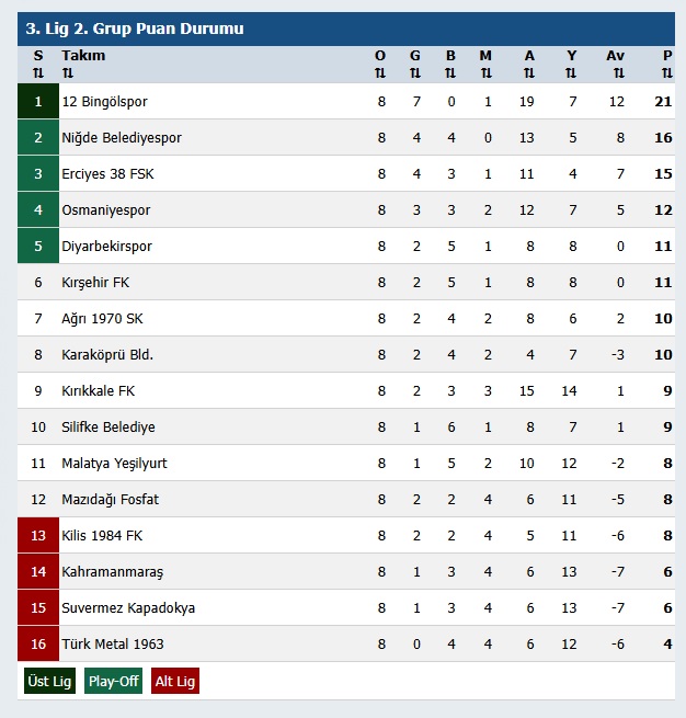 «3.Lig 2. Grup 8.Hafta Durumu)