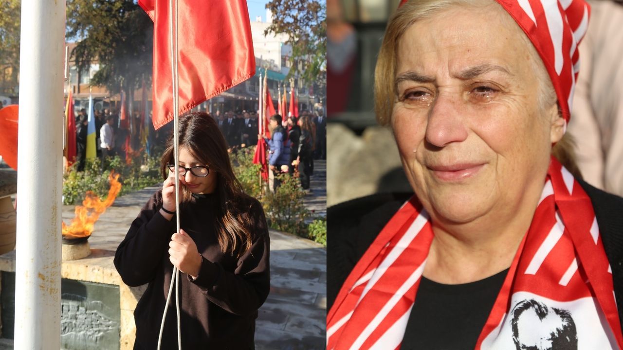 Anma töreninde, bir kız öğrencinin ve bir annenin gözyaşları, Atatürk’e duyulan sevgi ve özlemin en içten ifadesi oldu.