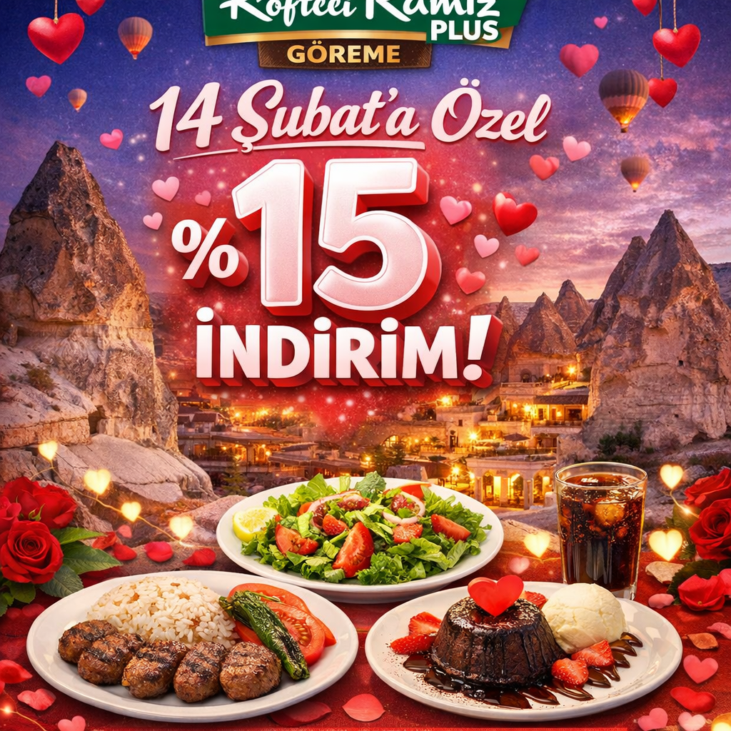 14 Şubat’ta yüzde 15 indirim fırsatı sunan Köfteci Ramiz Plus Göreme, özel günleri lezzet ve manzarayla taçlandırıyor.