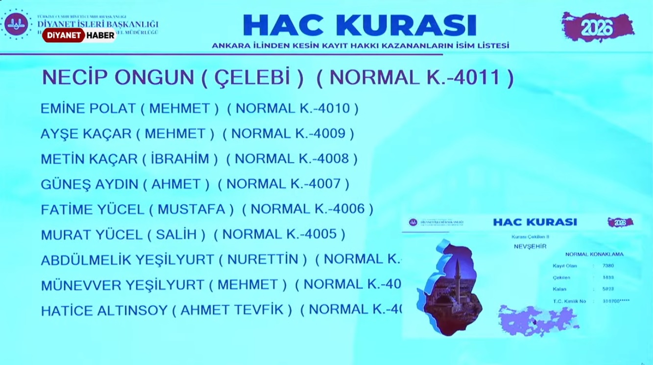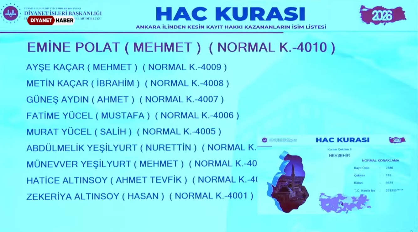 2026 yılı hac kurasında Nevşehir de yer aldı. Kent genelinde binlerce hacı adayı, aileleriyle birlikte dualar ederek kuradan çıkmayı umutla bekledi.