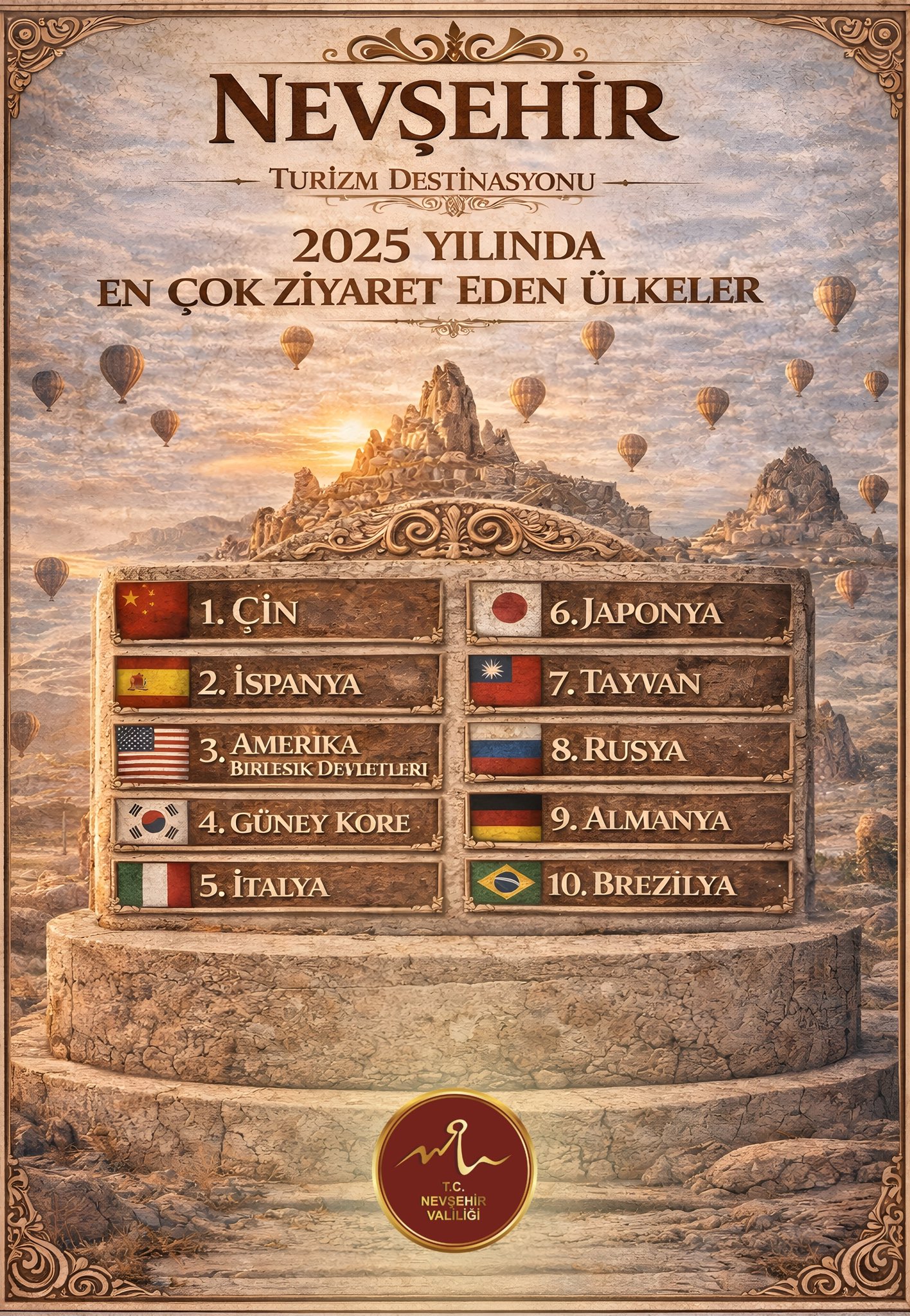 Nevşehir Valisi Ali Fidan, 2024 ve 2025 yıllarına ilişkin turizm verilerini kamuoyuyla paylaştı. Vali Fidan, Nevşehir’in turizmde yakaladığı ivmenin sürdürülebilir şekilde devam ettiğini belirterek, kalite odaklı hizmet anlayışı ve güçlü destinasyon yönetimiyle bu başarının daha da ileri taşınacağını vurguladı.