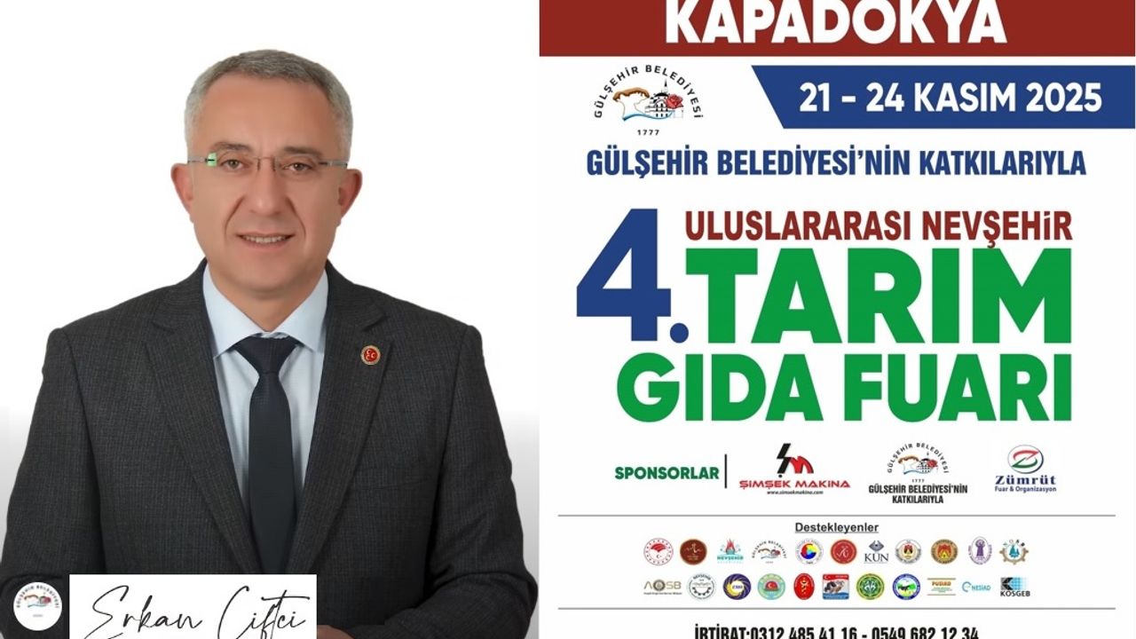 Gülşehir Belediye Başkanı Erkan Çiftci, 4. Uluslararası Nevşehir Kapadokya Tarım Ekipmanları, Gıda ve Hayvancılık Fuarı için tüm vatandaşları Gülşehir ilçesine davet etti.