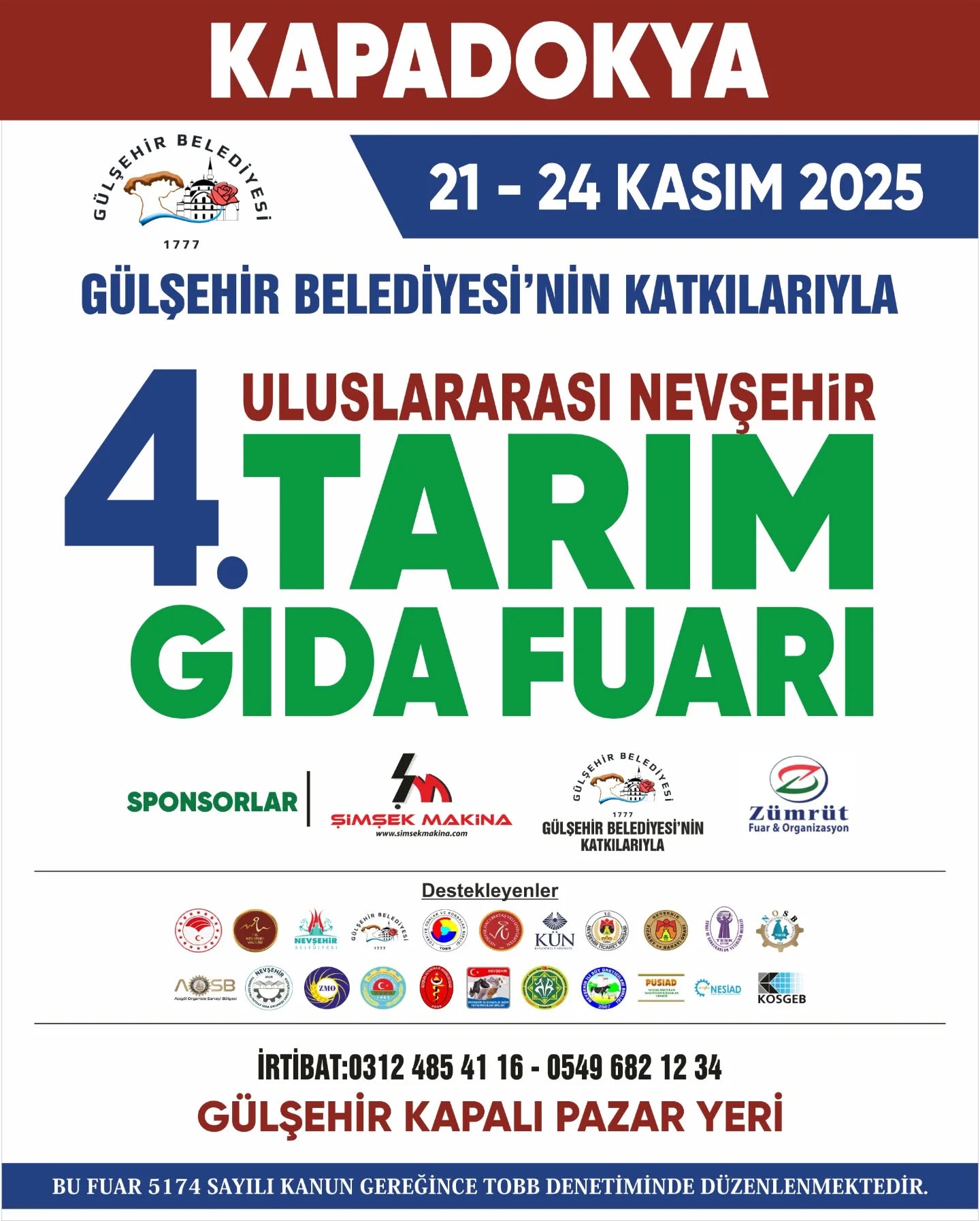 Nevşehir’de geleneksel hale gelen Tarım ve Gıda Fuarı’nın 4’üncüsü 21-24 Kasım 2025 tarihleri arasında Gülşehir ilçesinde gerçekleştirilecek.
