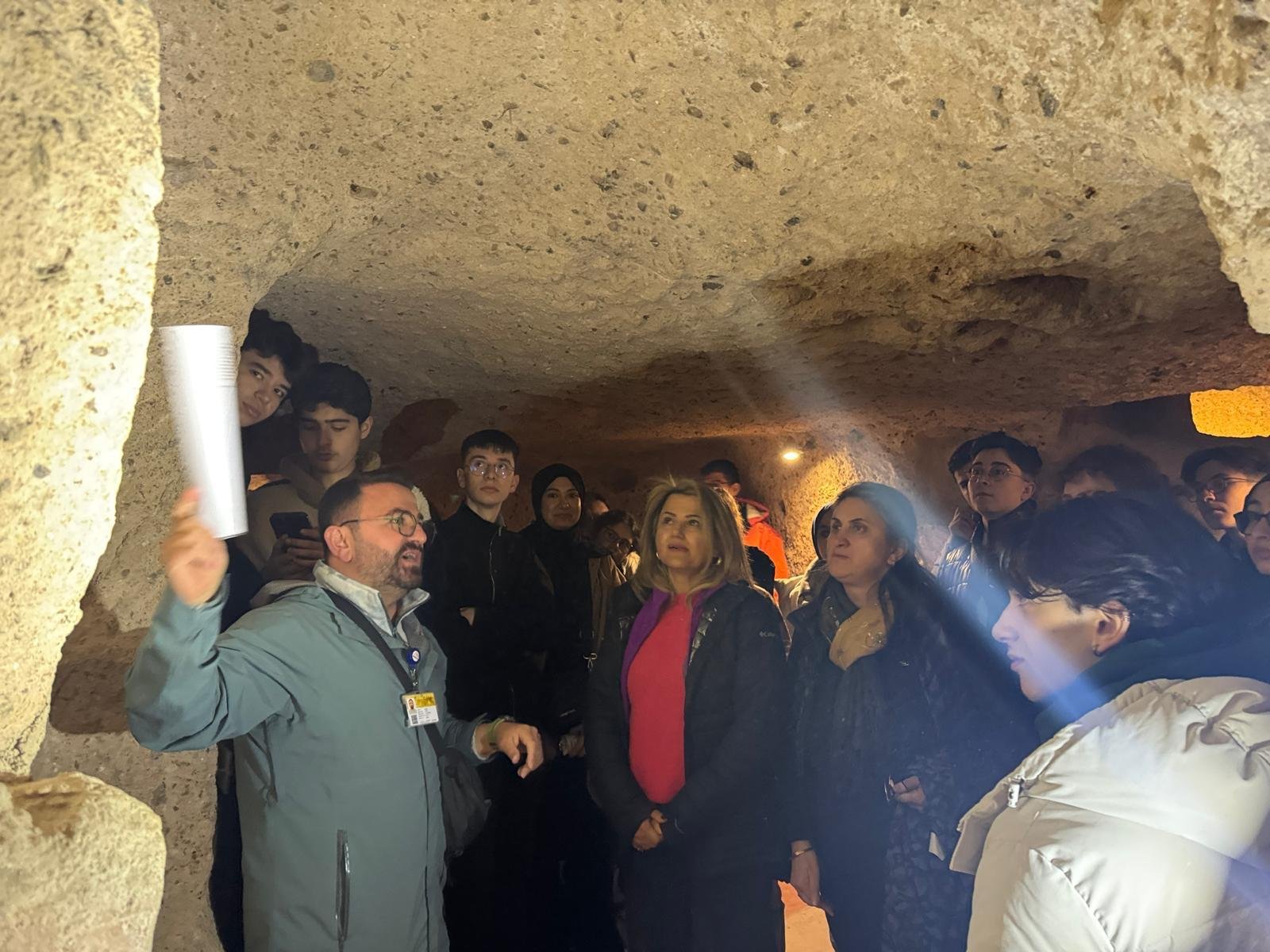 Program kapsamında katılımcılar, bölgenin en önemli turistik noktalarından biri olan Kaymaklı Yeraltı Şehri’ni ziyaret ederek tarihin derinliklerine yolculuk yaptı. Ardından Uçhisar Kalesi, Üç Güzeller, Devrent Vadisi ve Göreme gezilerek Kapadokya’nın doğal ve tarihi zenginlikleri yerinde incelendi.