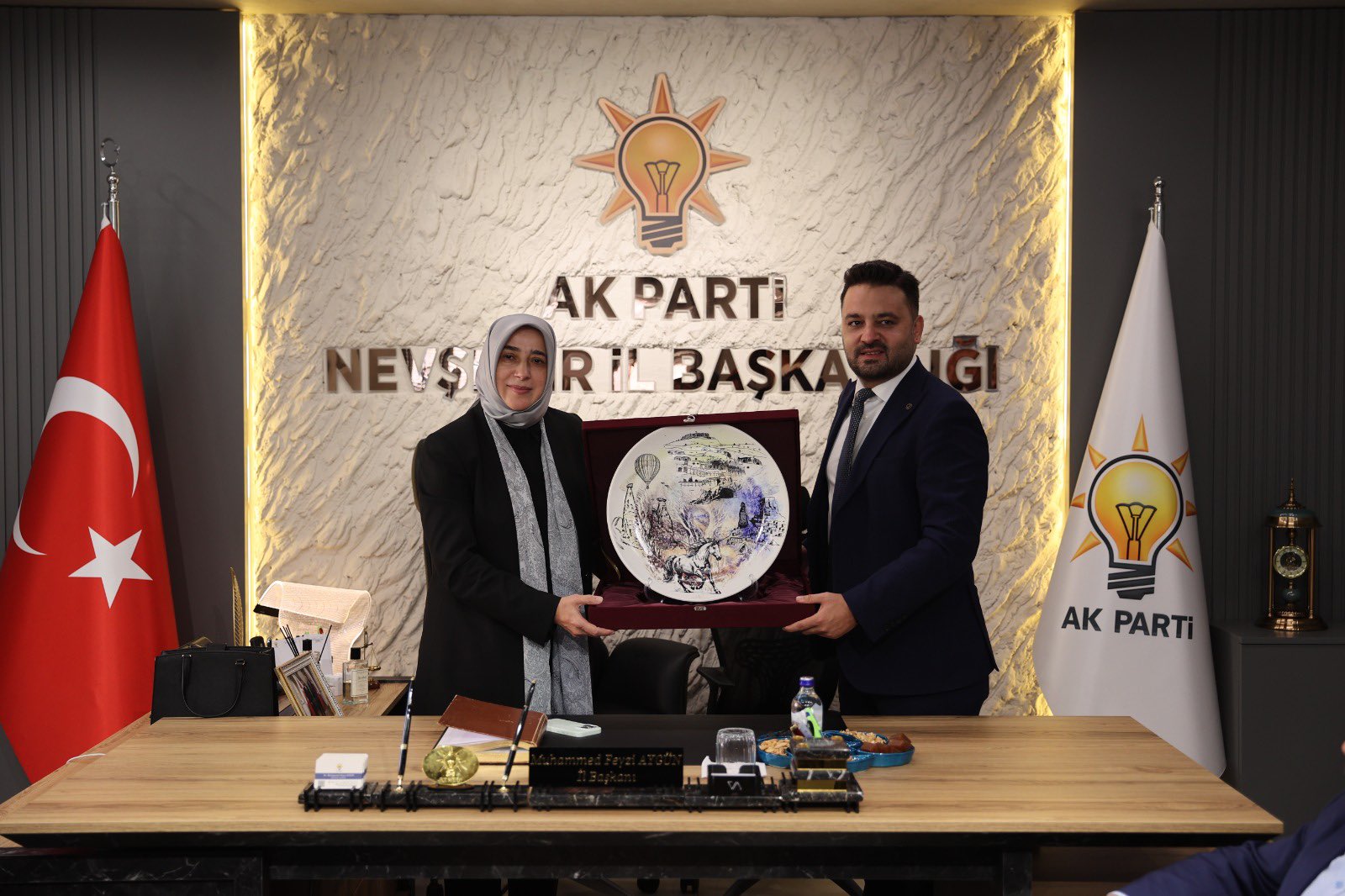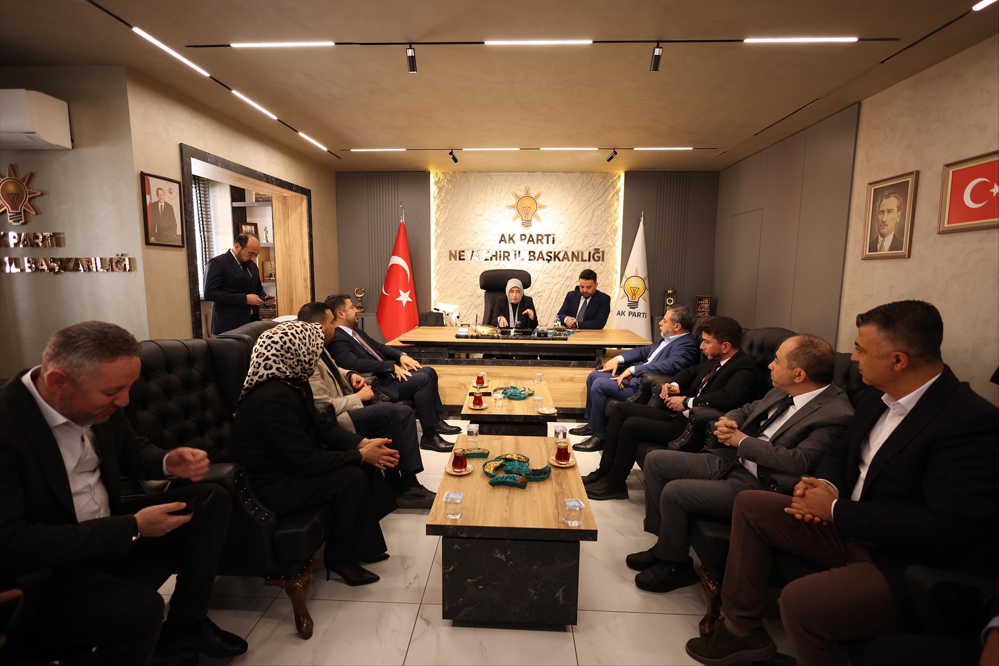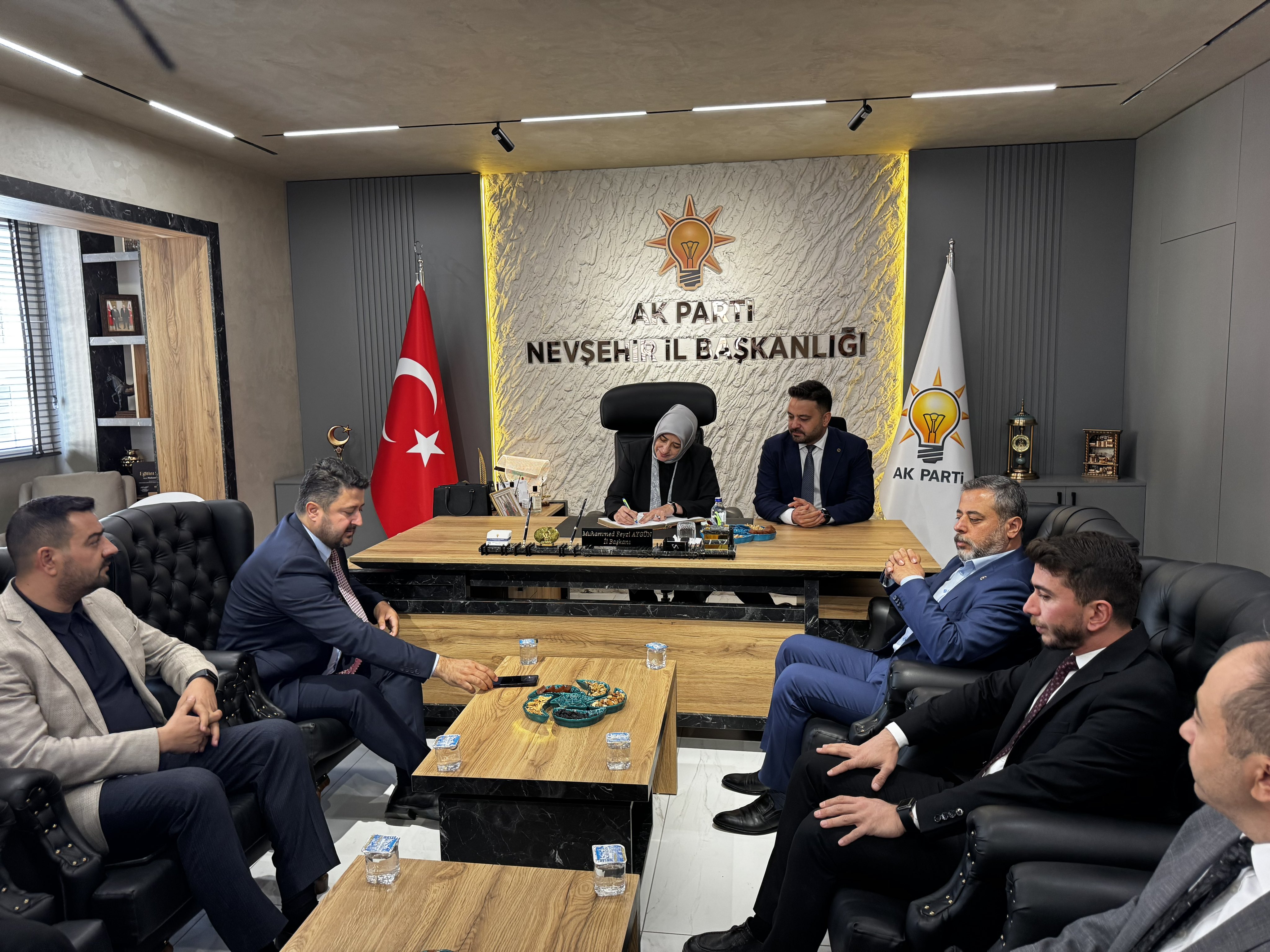 AK Parti Nevşehir İl Başkanı Muhammed Feyzi Aygün'de; "Türkiye Yüzyılı Buluşmaları kapsamında şehrimizde ağırladığımız Grup Başkanvekilimiz Sn. Özlem Zengin Hanımefendi’yi teşkilatımızda misafir ediyoruz. Teşkilatımızla bir araya gelerek istişarelerde bulunduğumuz bu kıymetli ziyaret vesilesiyle, Grup Başkanvekilimize gönülden teşekkür ediyorum. Nevşehir teşkilatı olarak, milletimizden aldığımız güçle hizmet ve eser siyasetimizi kararlılıkla sürdürüyor, şehrimizin yarınlarını birlikte inşa etmeye devam ediyoruz." dedi.