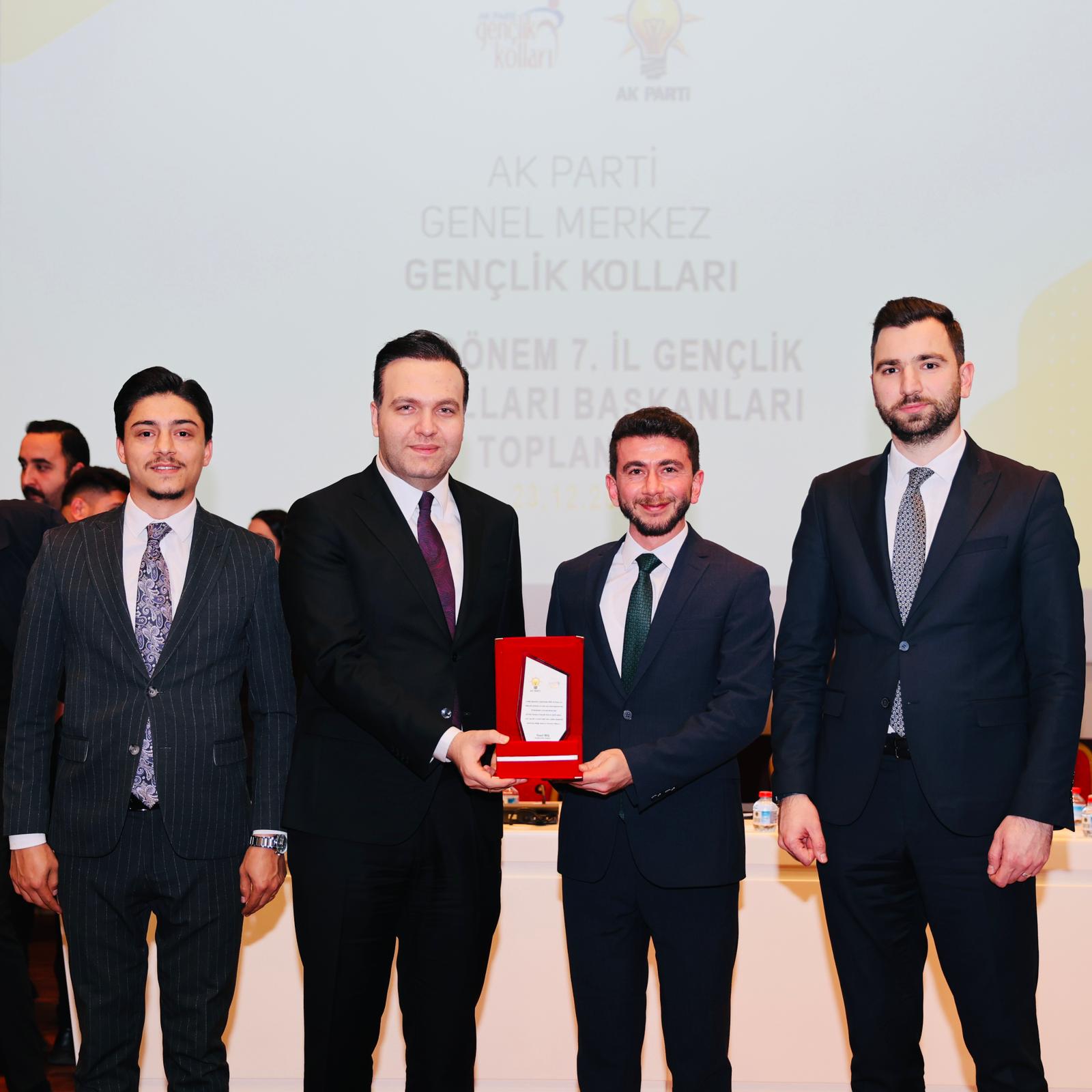 Yurtbilir, bu anlamlı başarıya vesile olan plaketin, AK Parti Genel Merkez Gençlik Kolları Başkanı Yusuf İbiş, Teşkilat Başkanı Osman Nuri Nazlıer ve Bölge Koordinatörü Serkan Aksu ile birlikte teslim alındığını belirtti.