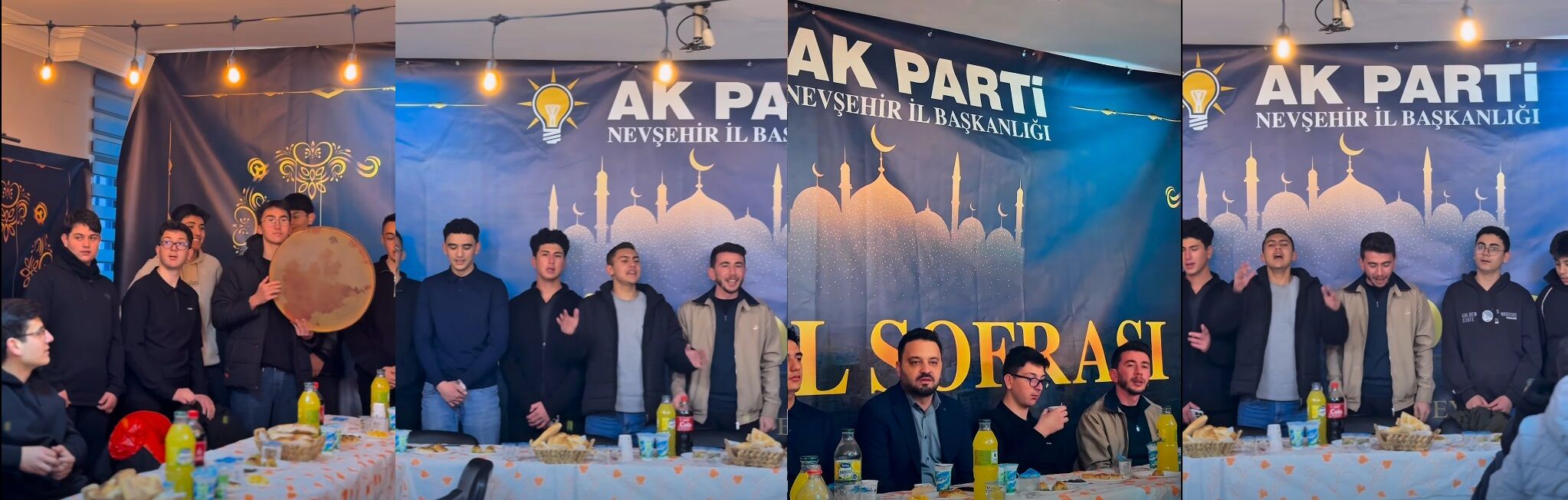 AK Parti Nevşehir İl Başkanlığı, Ramazan ayının manevi atmosferine anlam katan özel bir buluşmaya ev sahipliği yaptı. İftar programı öncesinde bir araya gelen liseli öğrenciler, birlikte seslendirdikleri “Kâbe’de Hacılar” ilahisi ile salonda duygu dolu anlar yaşattı.