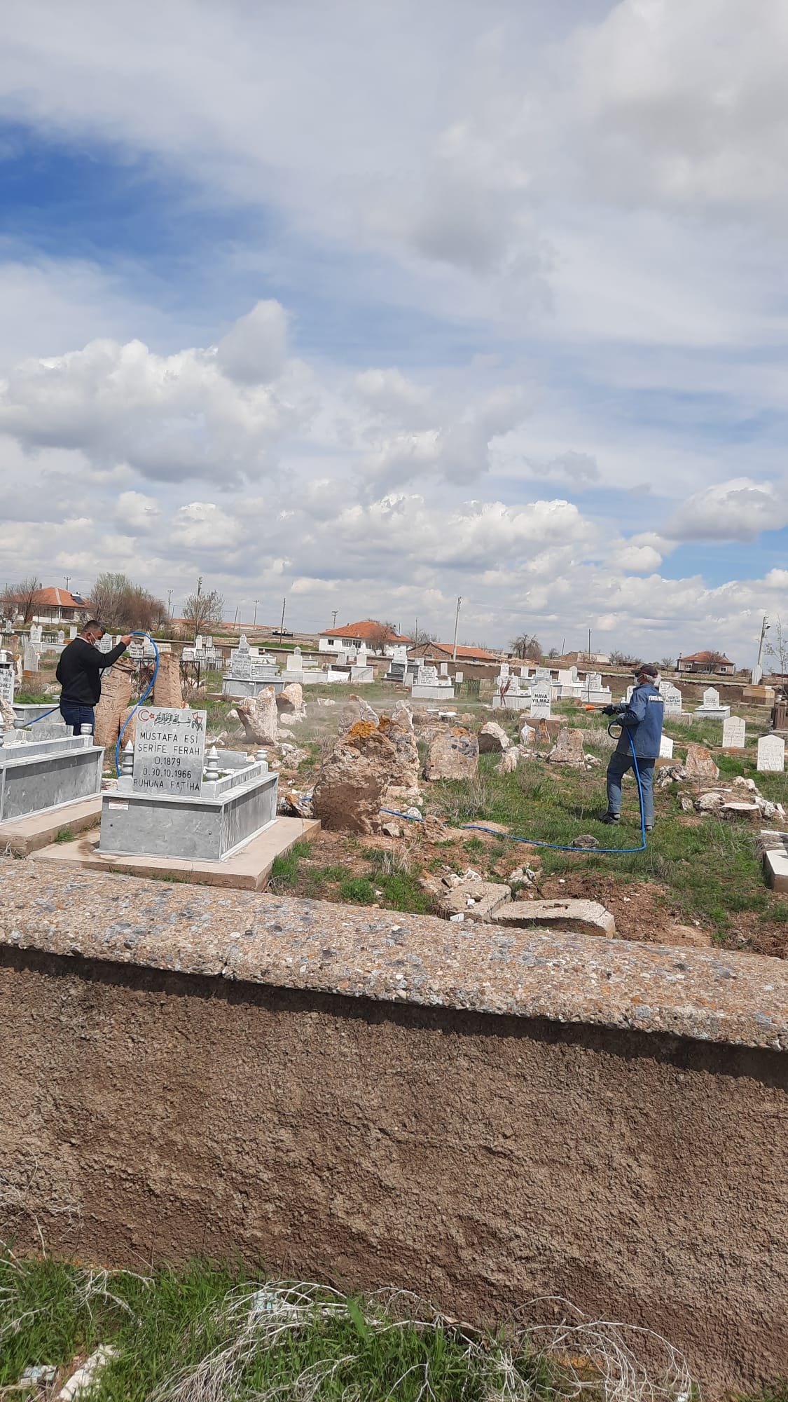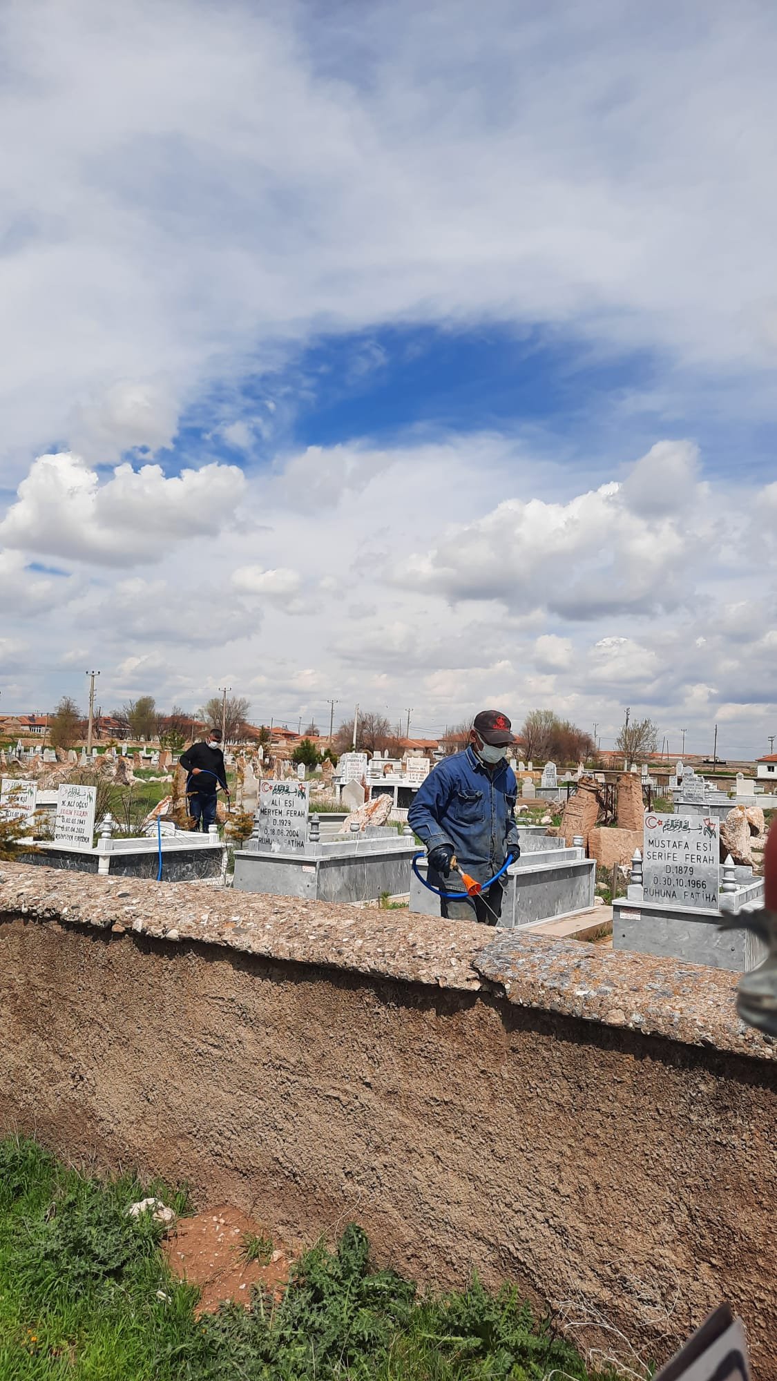 “Her yıl olduğu gibi bu sene de mezarlıklarımızda ot mücadelesi ve ilaçlama yaptık. Yağışların fazla olması nedeniyle ot daha da arttı, bu yüzden çalışmalara erken başladık” dedi.