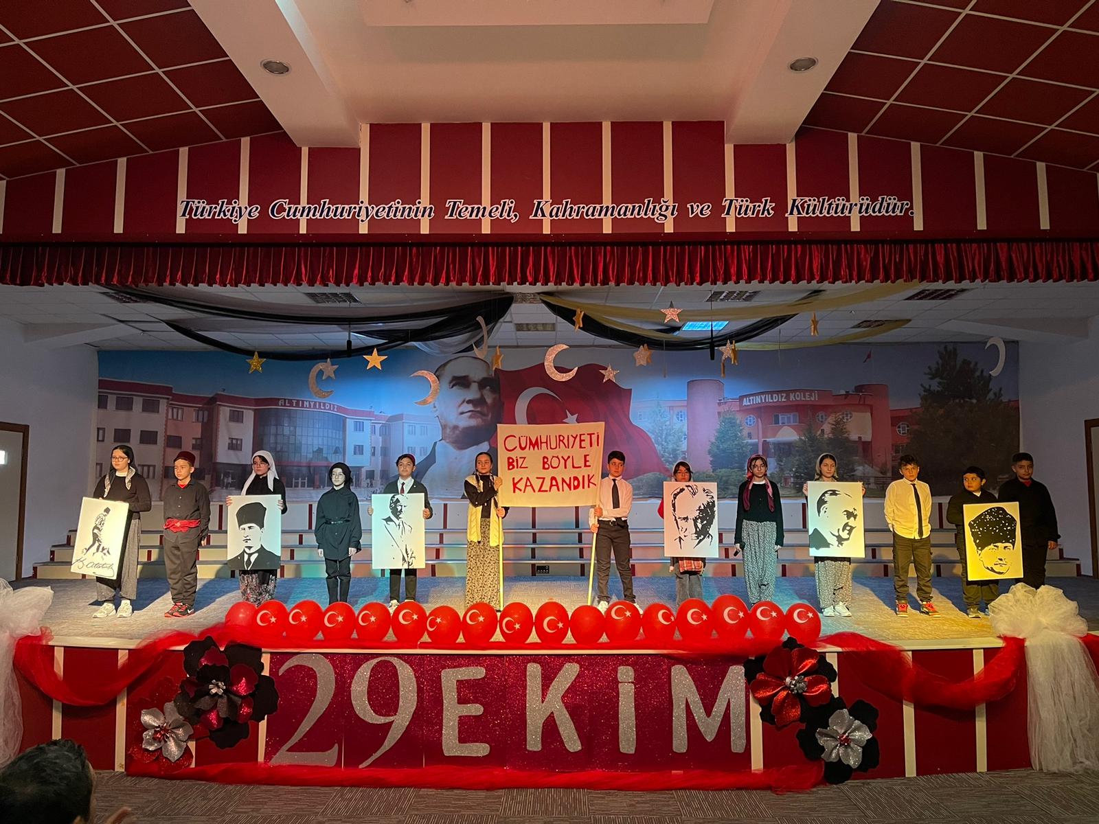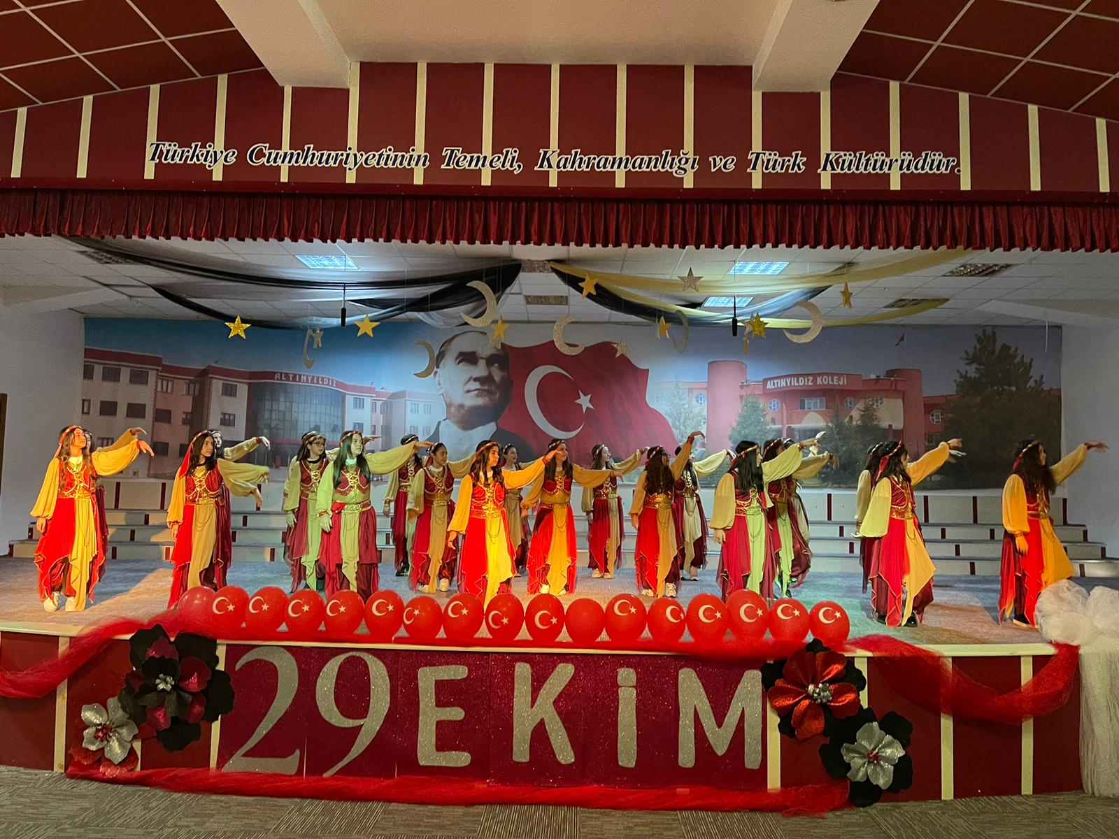 Etkinlikler kapsamında öğrenciler, drama gösterileriyle Cumhuriyet’in önemini sahnelediler. Oratoryo, koro performansları ve vals gösterisi salonları coşkulu bir atmosferle doldururken, halk oyunları gösterileriyle bayram coşkusu hep birlikte paylaşıldı. Öğrenciler programın ardından resim sergilerini de gezme fırsatı buldular. Her yaş grubundan öğrencinin katıldığı kutlamalar, Cumhuriyet’in değerlerini renkli ve eğlenceli sunumlarla pekiştirdi.