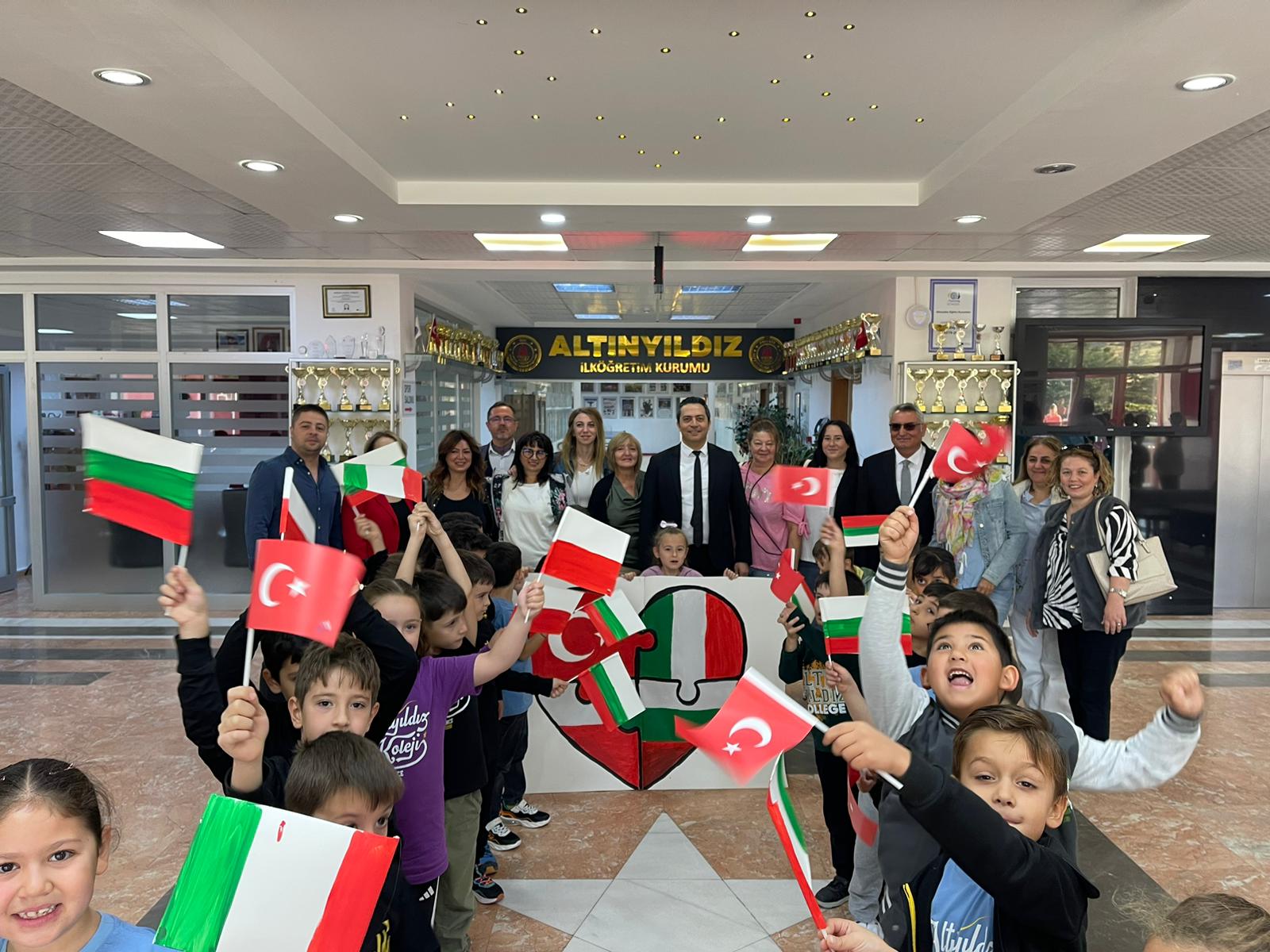 Altınyıldız İlköğretim Kurumu, Erasmus projesi kapsamında Bulgaristan, İtalya ve Polonya’dan gelen değerli konuklarını ağırlamaya devam ediyor. Ekip hâlen okulumuzda bulunuyor ve eğitim modelimizi yakından inceleme fırsatı buluyor.