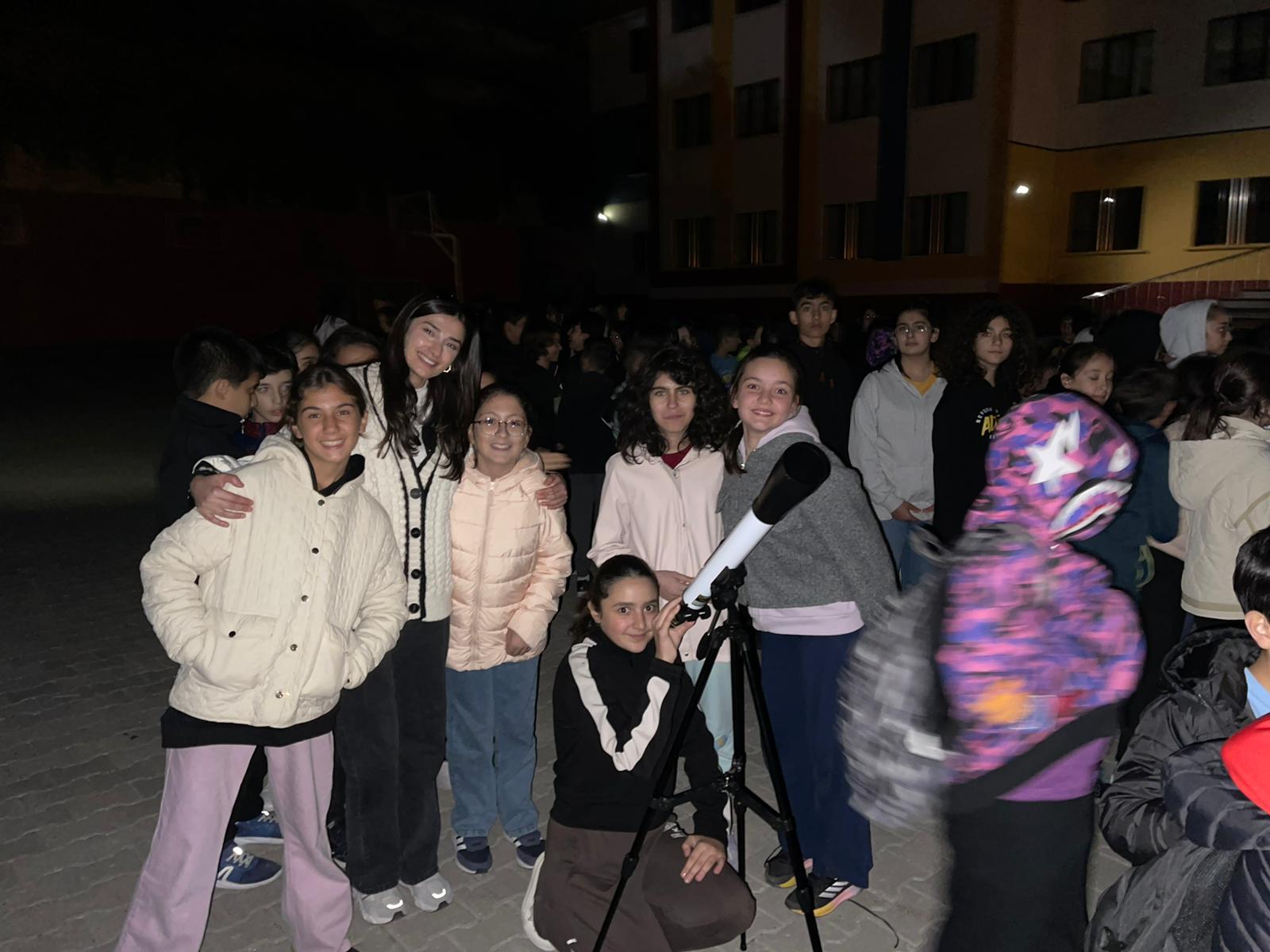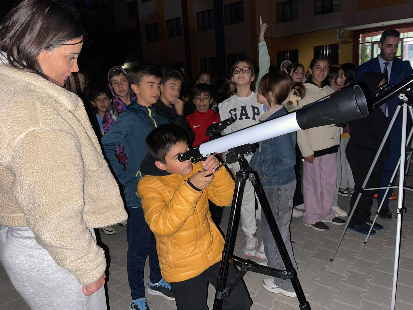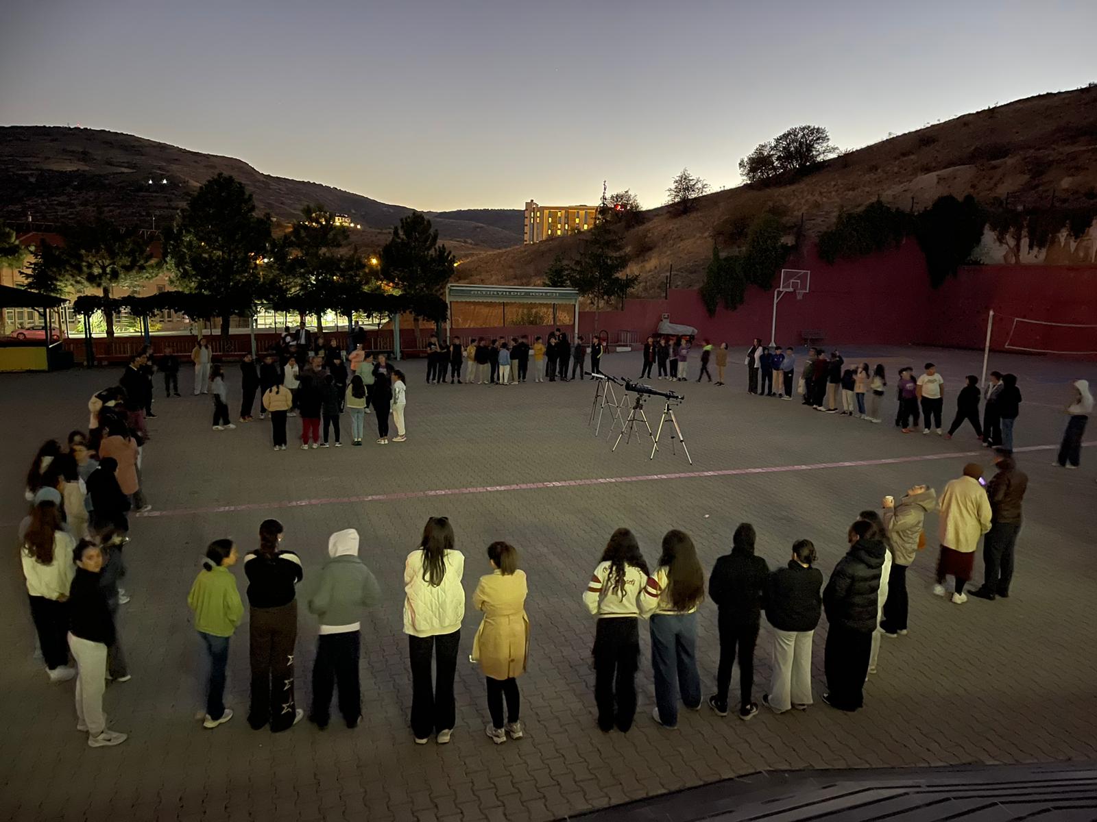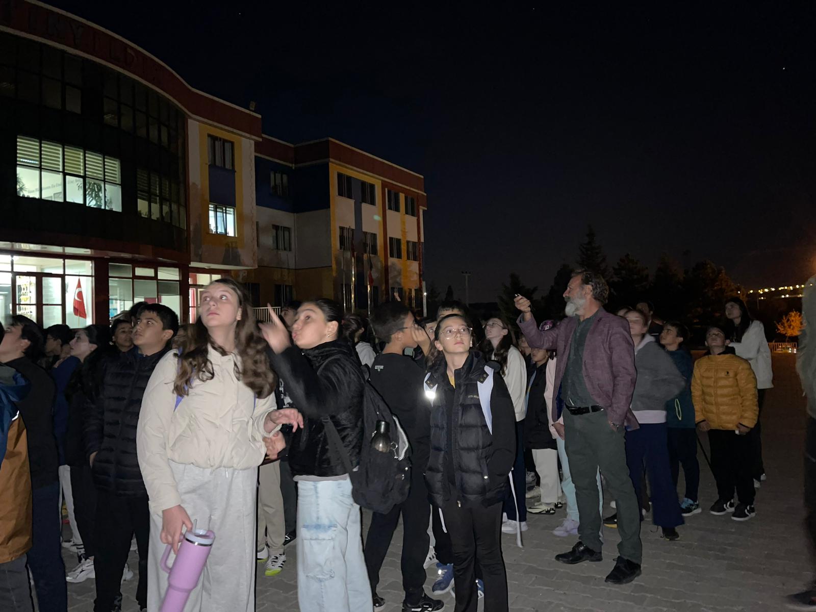 Prof. Dr. Meydan, evrenin gizemlerini, yıldızların oluşum sürecini ve gökyüzü gözlemlerinin bilimsel önemini öğrencilerle paylaştı. Seminerin ardından öğrenciler, öğretmenleri eşliğinde okul bahçesinde kurulan teleskoplarla gökyüzünü gözlemleme fırsatı buldular.
