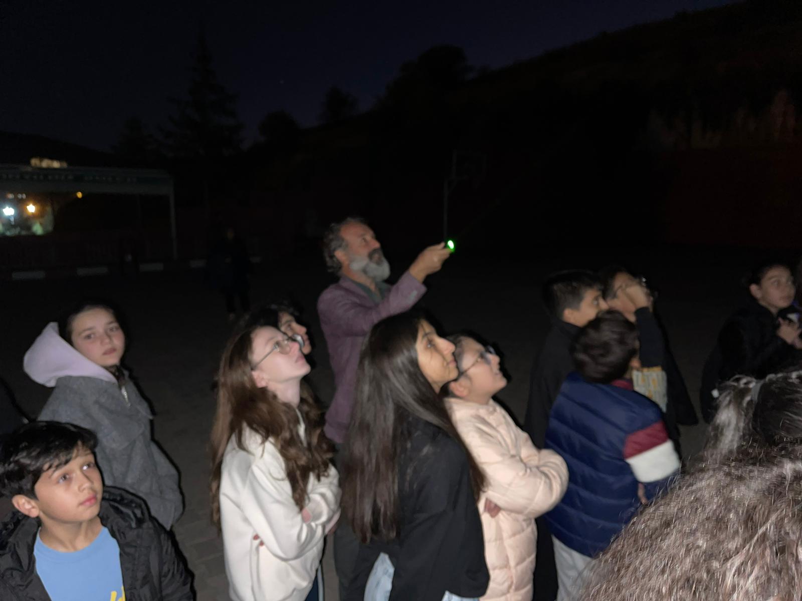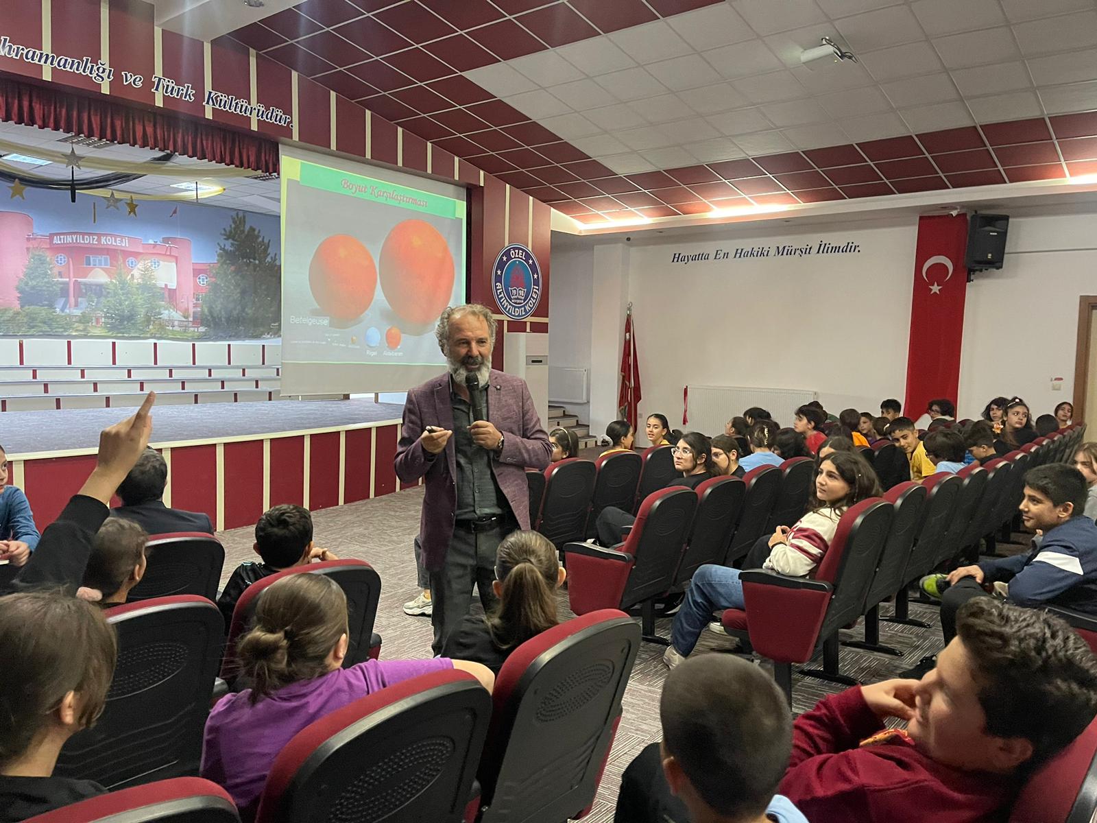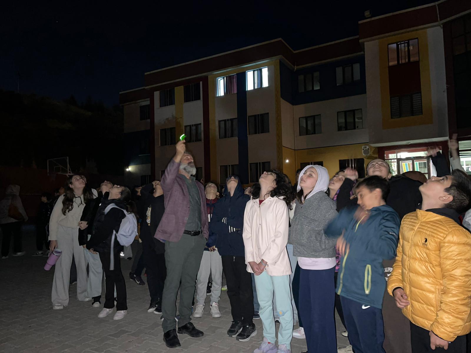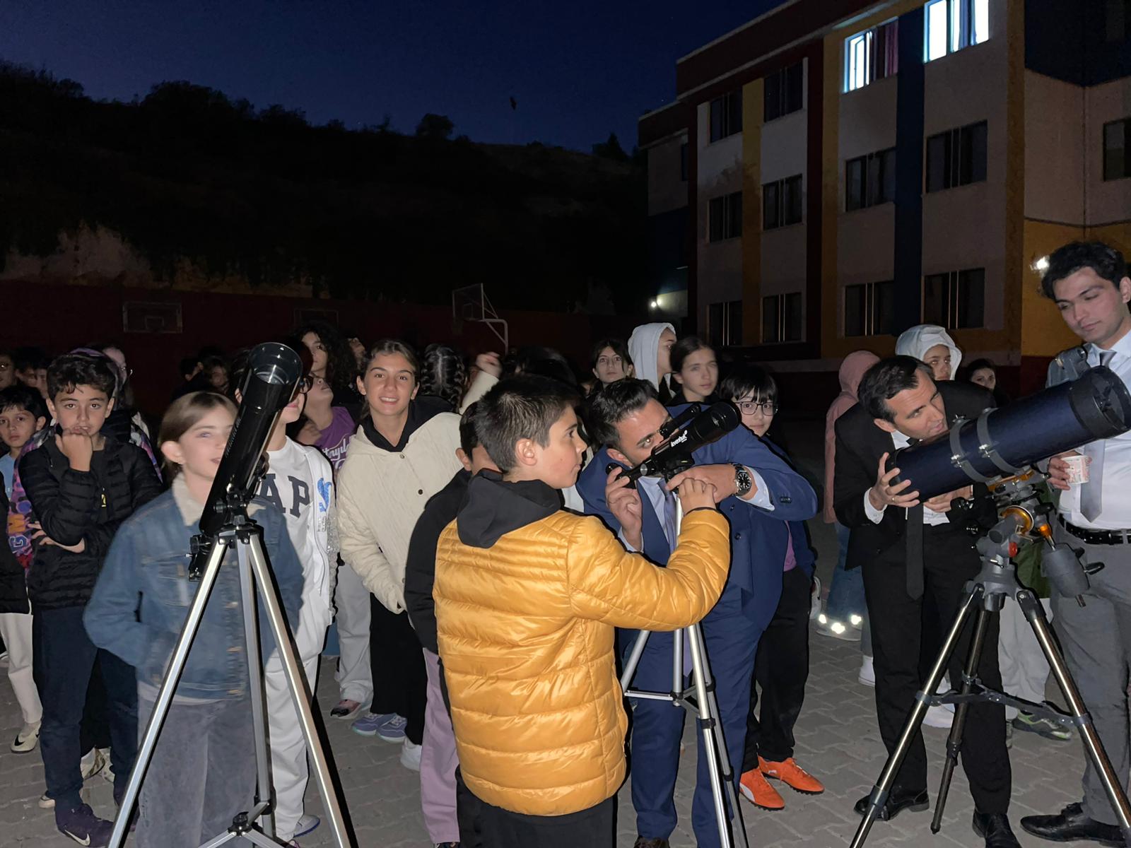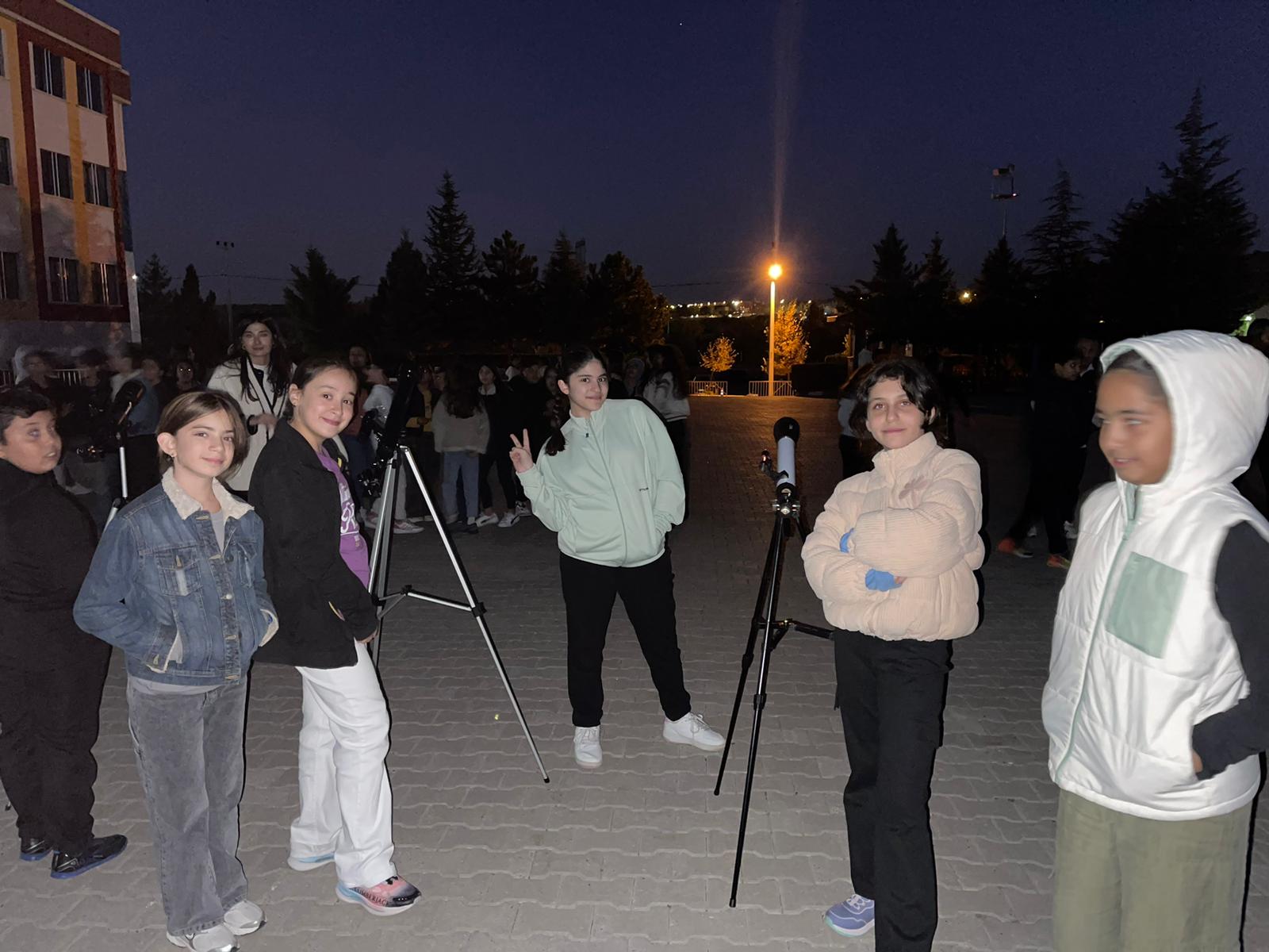 Prof. Dr. Meydan, evrenin gizemlerini, yıldızların oluşum sürecini ve gökyüzü gözlemlerinin bilimsel önemini öğrencilerle paylaştı. Seminerin ardından öğrenciler, öğretmenleri eşliğinde okul bahçesinde kurulan teleskoplarla gökyüzünü gözlemleme fırsatı buldular.