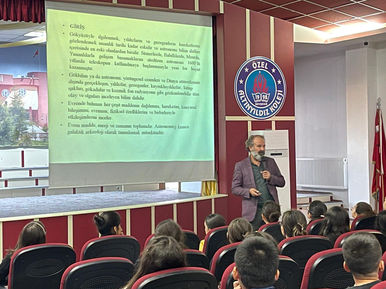Gökyüzü Gözlem Şenliği kapsamında okulumuzda Nevşehir Hacı Bektaş Veli Üniversitesi öğretim üyesi Prof. Dr. Ali Meydan öğrencilerimize yönelik keyifli ve öğretici bir seminer verdi.