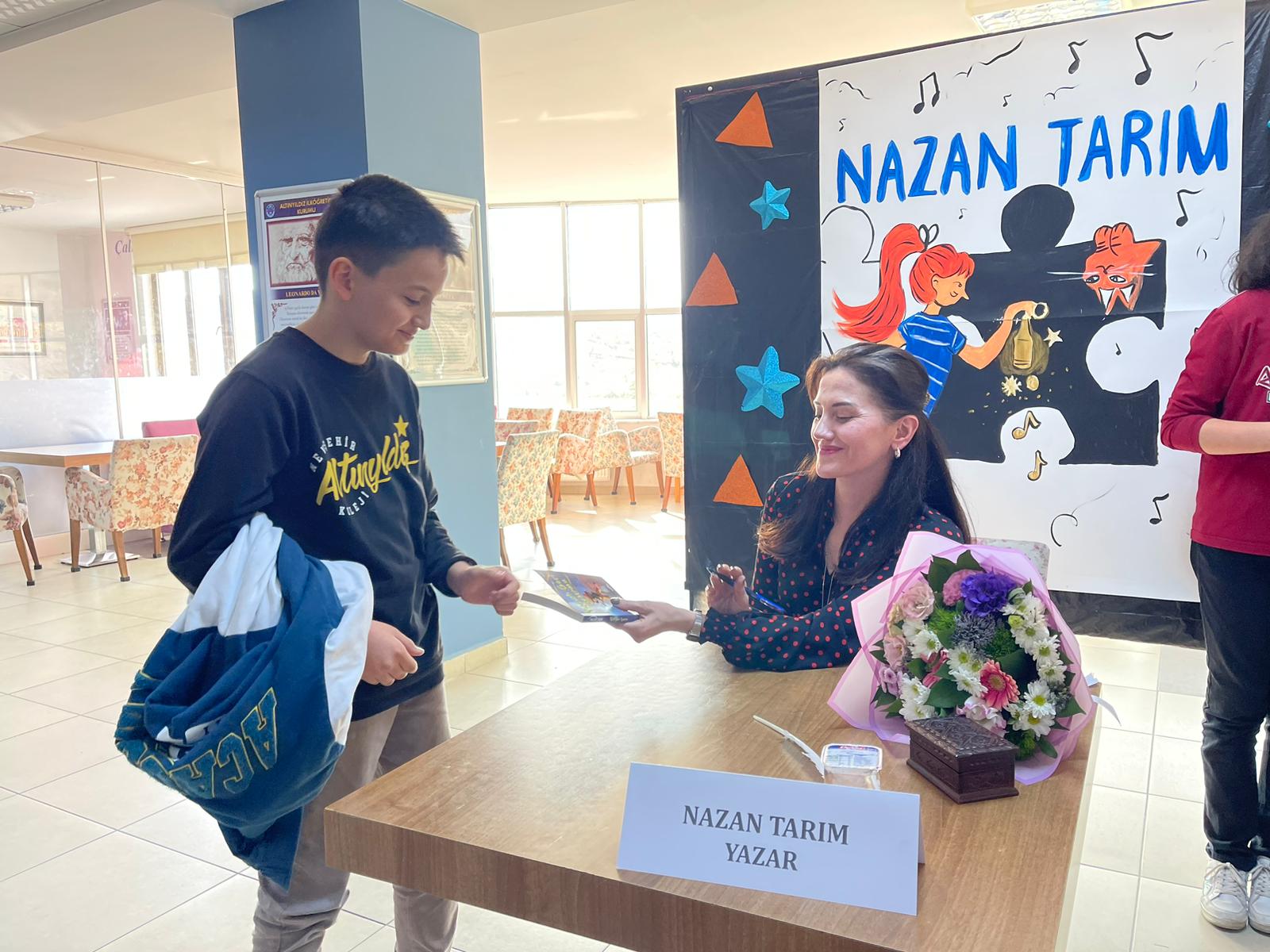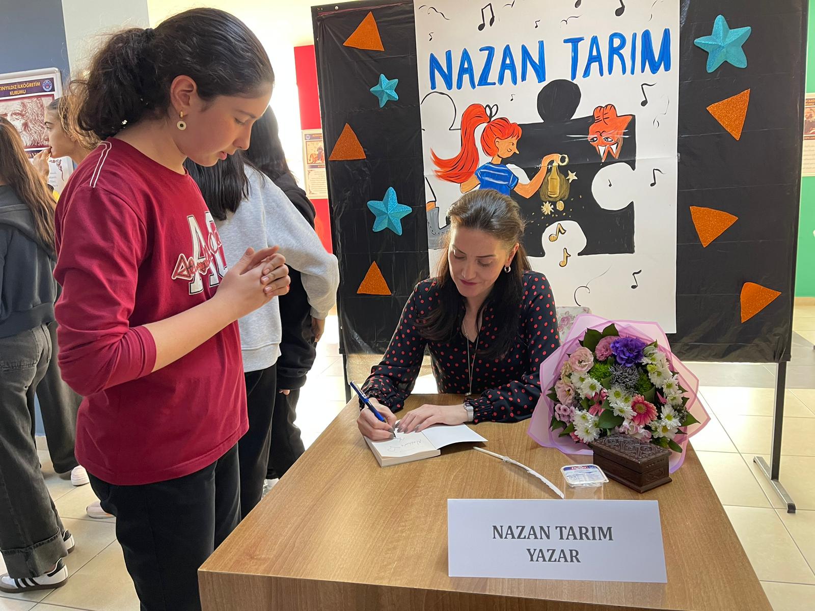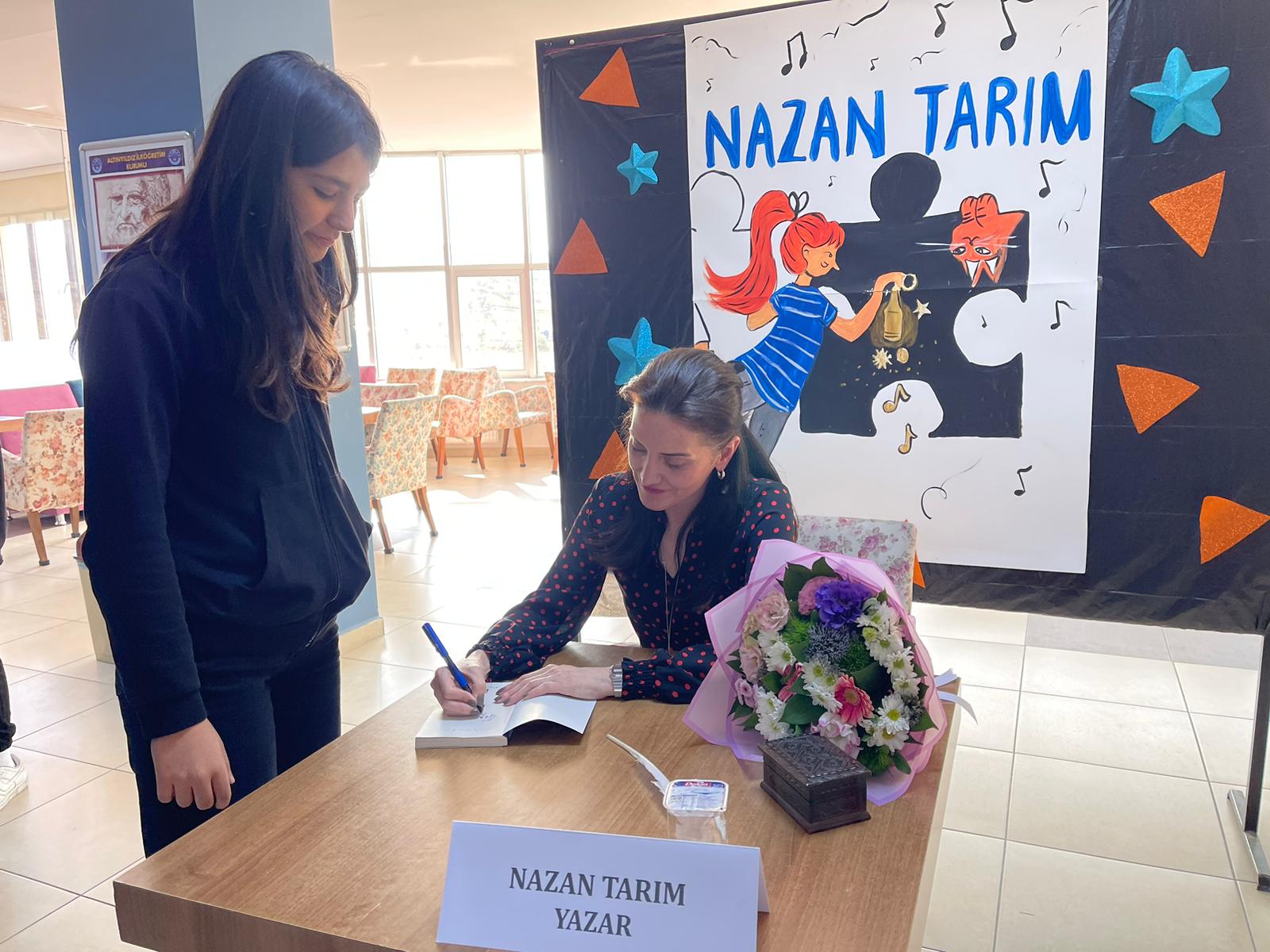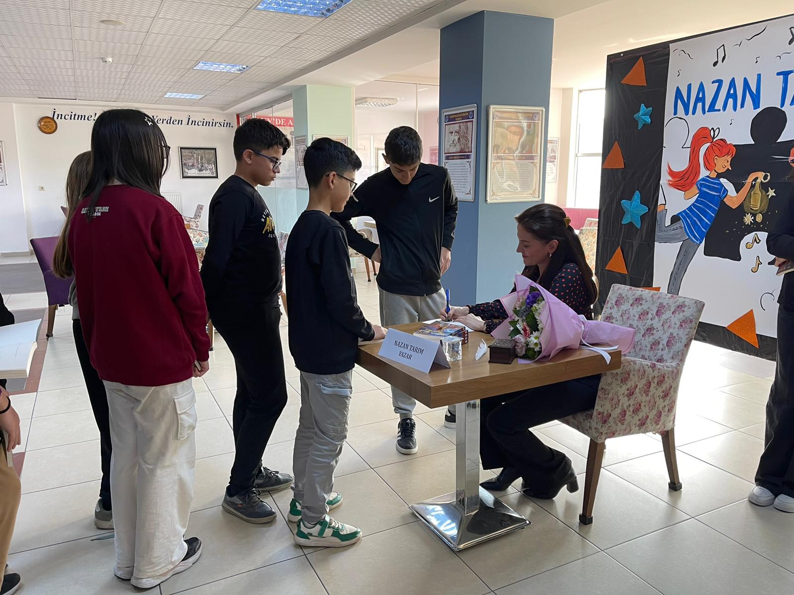 Etkinliğin sonunda öğrenciler, Nazan Tarım’a kitaplarını imzalatma mutluluğu yaşadı. Keyifli ve öğretici anlara sahne olan bu buluşma, öğrencilerimizin kitaplara ve edebiyata olan ilgisini daha da artırdı.