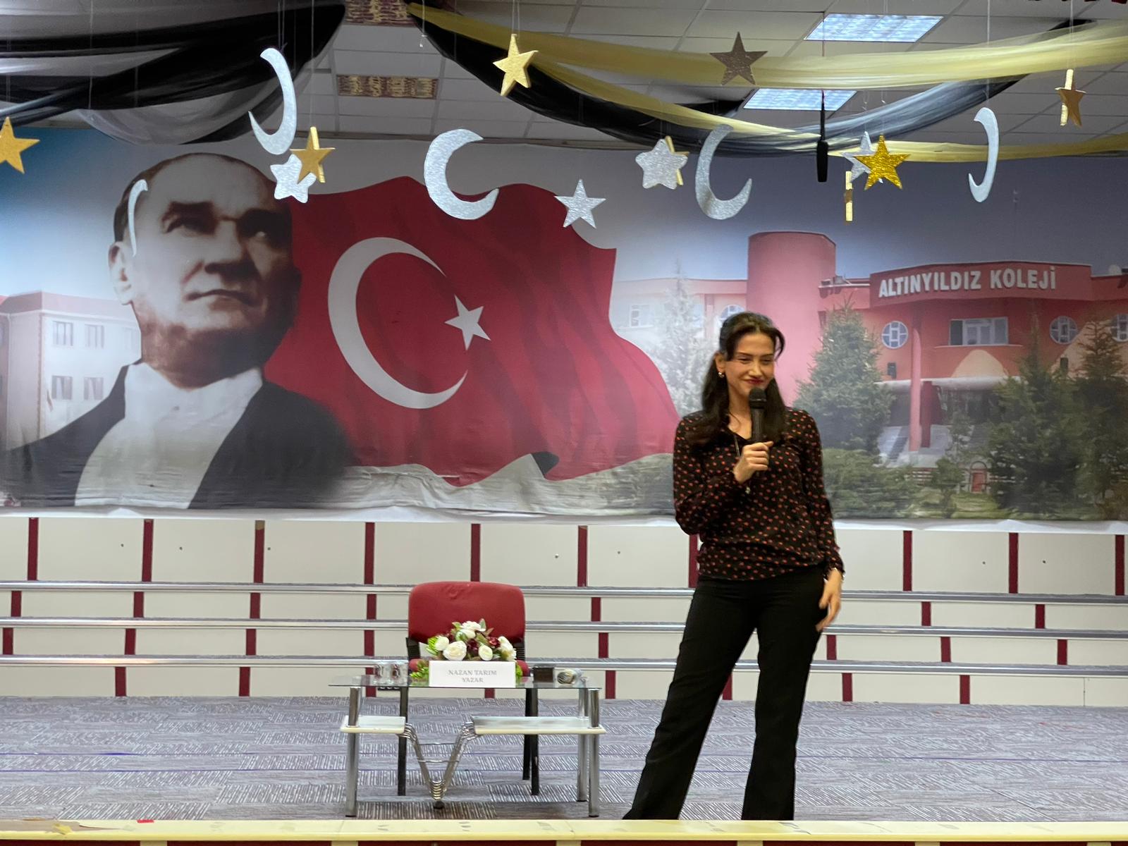 Öğrencilerle samimi bir söyleşi gerçekleştiren Nazan Tarım, yazarlık yolculuğundan, kitaplarını kaleme alırken yaşadığı deneyimlerden ve çocuklara hitap eden hikâyelerini oluşturma sürecinden bahsetti. Öğrenciler, yazarın anlattıklarını ilgiyle dinledi ve merak ettikleri soruları sorma fırsatı buldu.