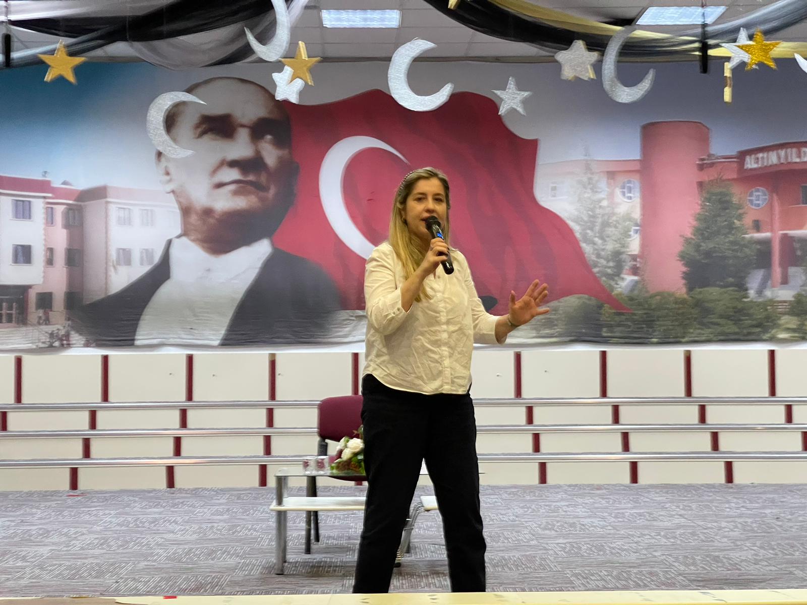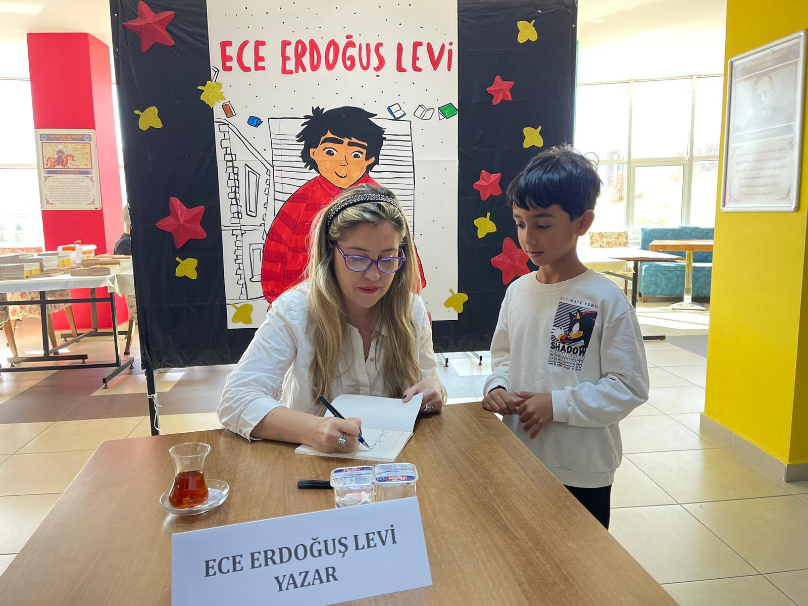 Altınyıldız İlköğretim Kurumunda bu yıl büyük bir heyecanla gerçekleştirilen Kitap Şenliği, yazar buluşmalarıyla devam ediyor. Şenliğin üçüncü konuğu, sevilen yazar Ece Erdoğuş Levi oldu.