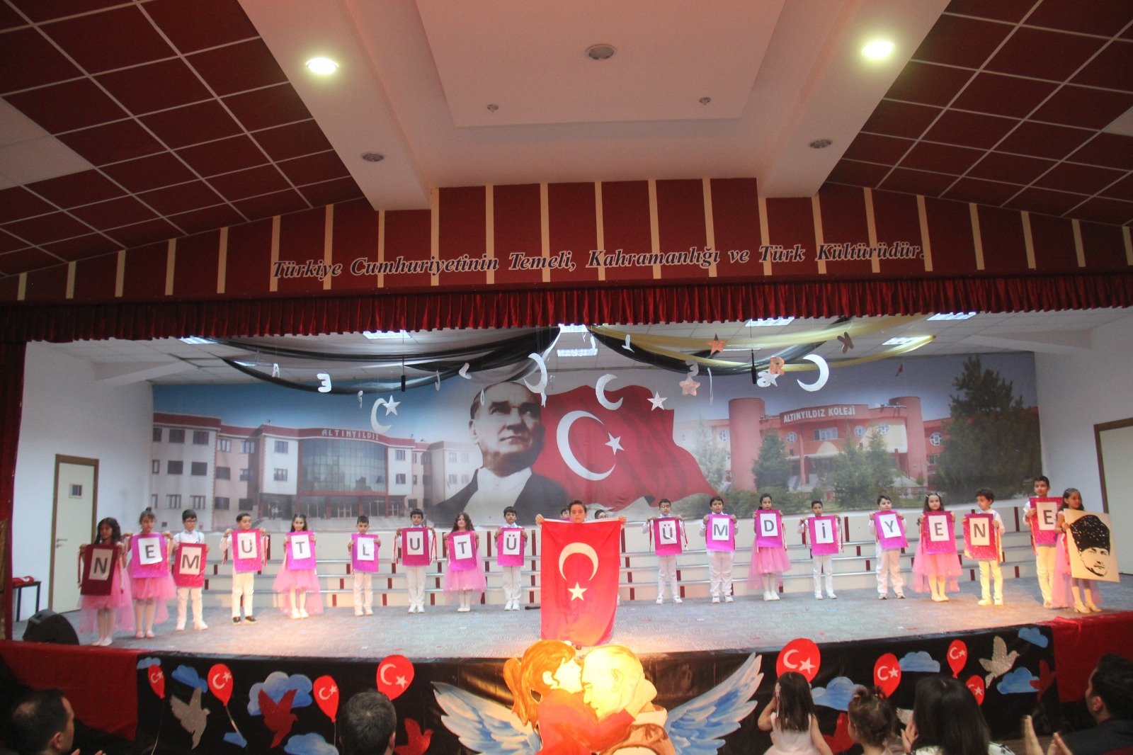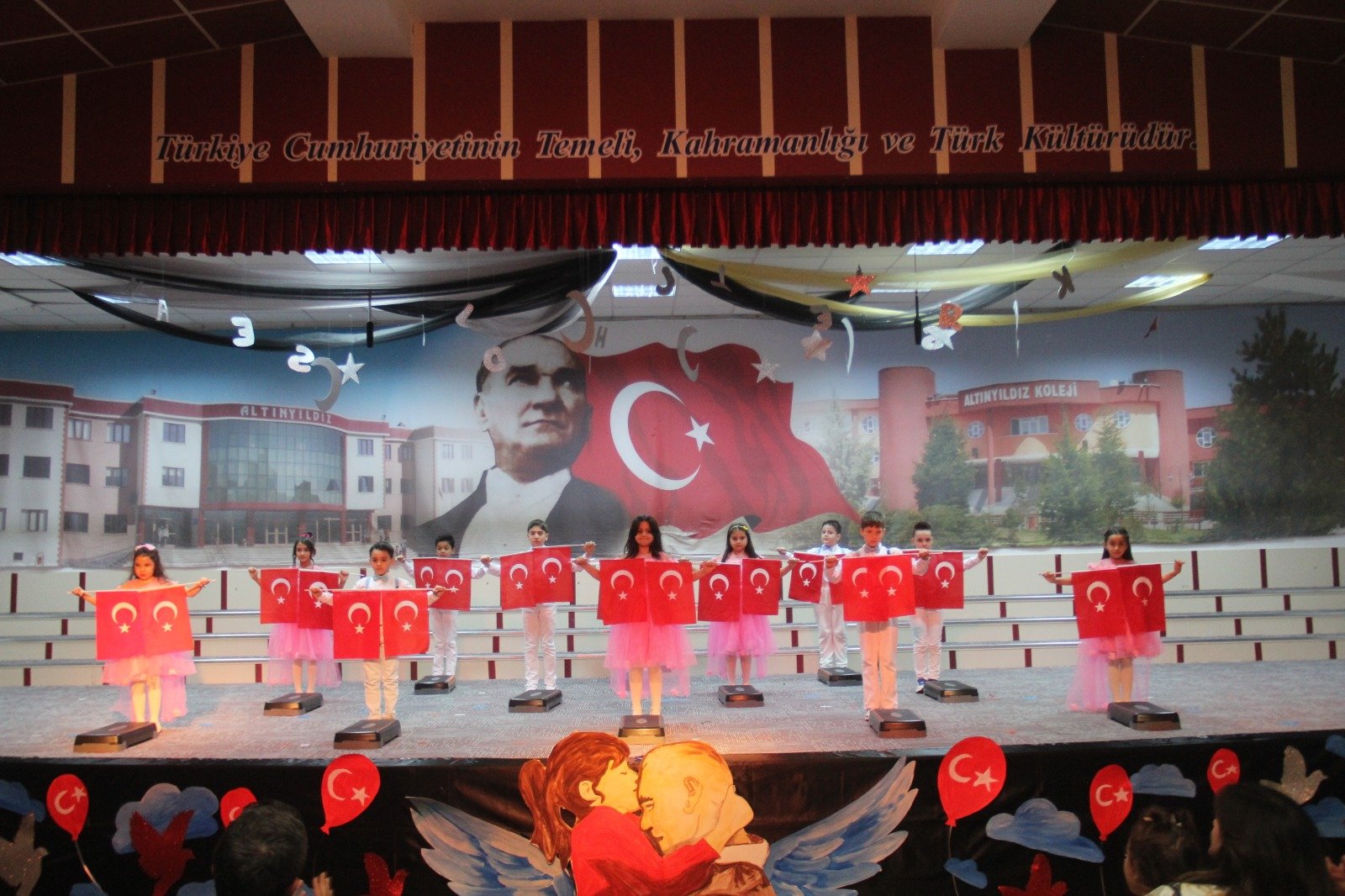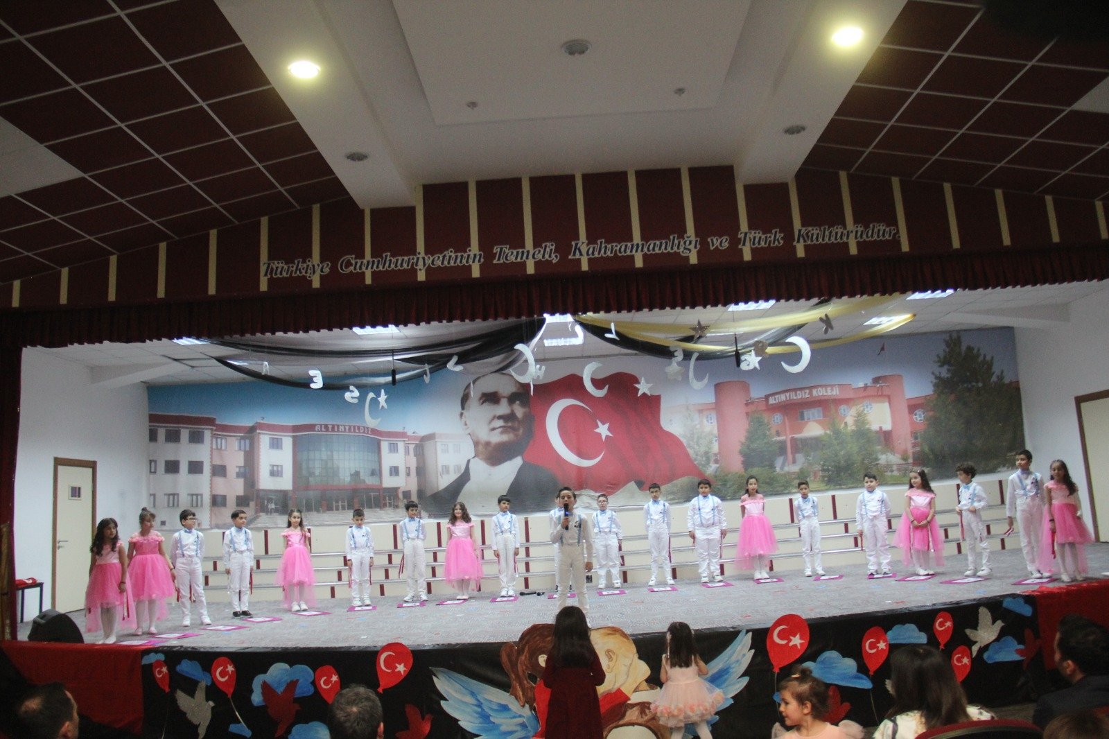 Altınyıldız İlköğretim Kurumunda 2. sınıflarımızın hazırladığı 23 Nisan Ulusal Egemenlik ve Çocuk Bayramı programı büyük bir coşku ve gururla kutlandı. Velilerin yoğun katılım gösterdiği törende öğrenciler birbirinden renkli ve anlamlı gösterilere imza attı.