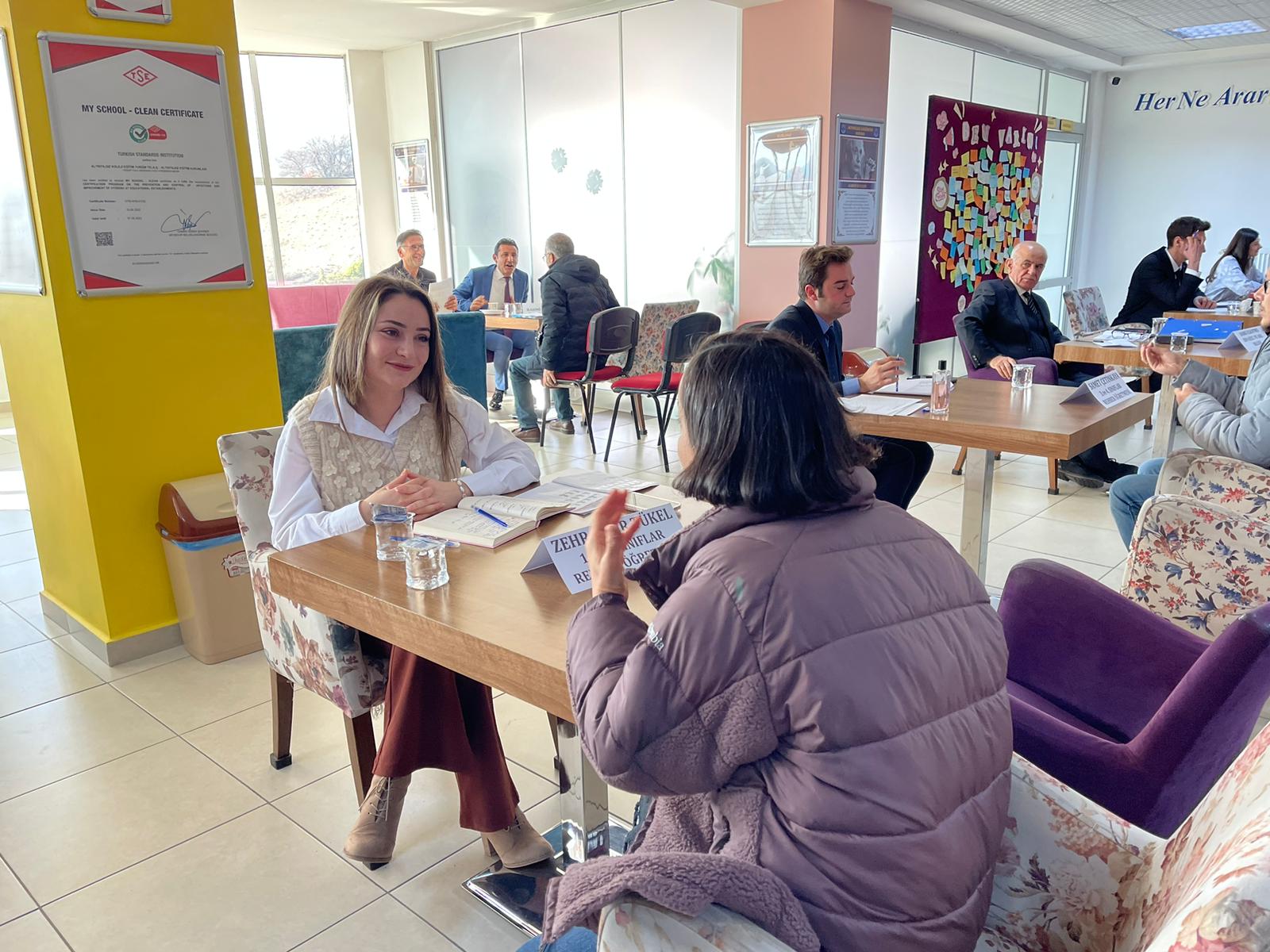 1. sınıftan 8. sınıfa kadar tüm kademelerde yapılan toplantılarda, veliler sınıf ve branş öğretmenleriyle birebir görüşerek öğrencilerin akademik durumları, davranışsal gelişimleri ve sosyal etkinliklerdeki performansları hakkında ayrıntılı bilgi aldılar.