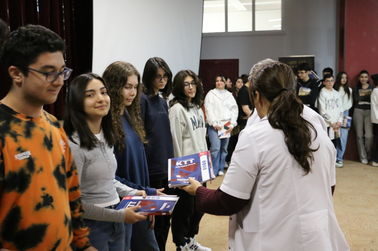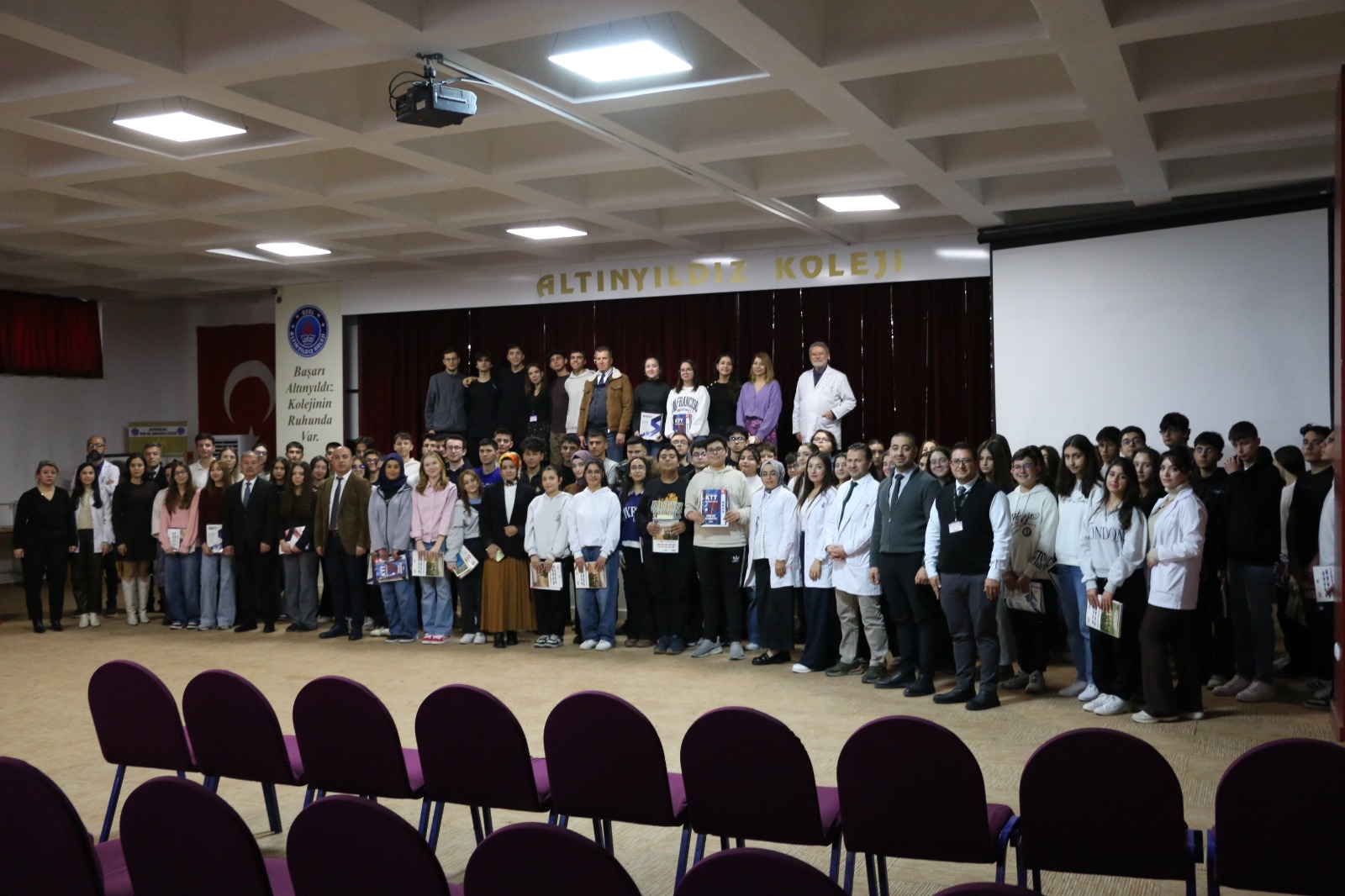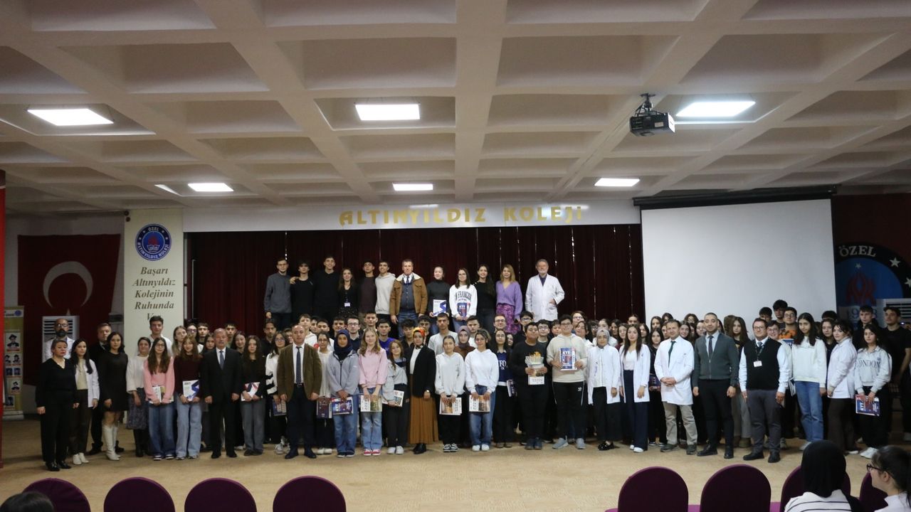 Altınyıldız Koleji Fen ve Anadolu Lisesinde, deneme sınavı sonuçlarına göre başarı gösteren öğrenciler için konferans salonunda ödül töreni düzenlendi. 9-10-11 ve 12. sınıflardan her şubede ilk üçe giren öğrenciler, başarılı performanslarının karşılığında kitap ödüllerini aldılar. Öğrenciler, ödüllerini sınıf öğretmenleri ve okul idarecilerinin elinden aldılar.