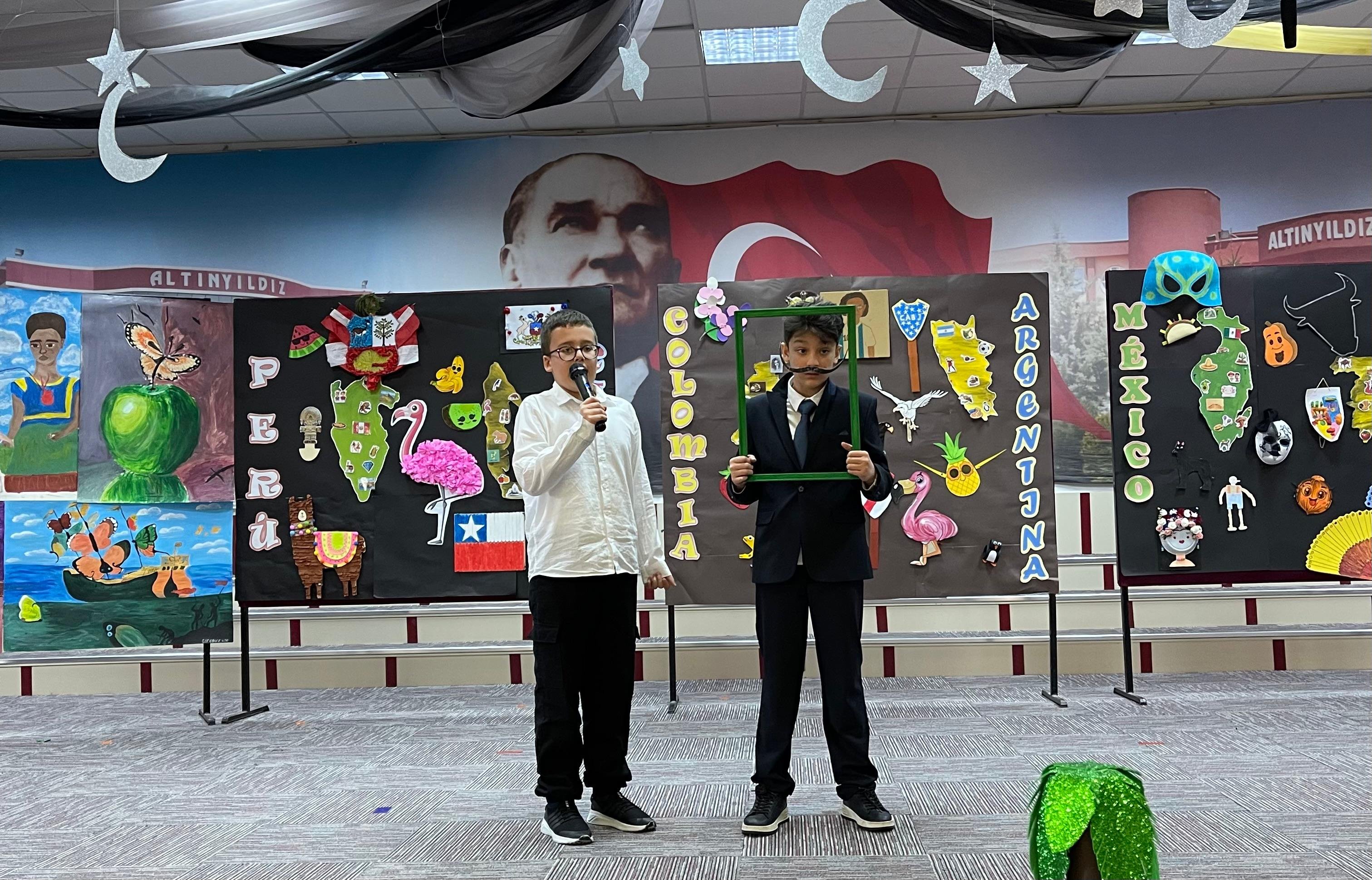 Altınyıldız İlköğretim Kurumu’nda düzenlenen İspanyolca Günü etkinlikleri, öğrencilerin hem eğlenerek öğrenmelerine hem de yıl boyunca edindikleri kazanımları sergilemelerine olanak sağladı. Renkli ve keyifli anlara sahne olan etkinlik, öğrencilerin yabancı dil öğrenimine olan motivasyonunu da artırdı.