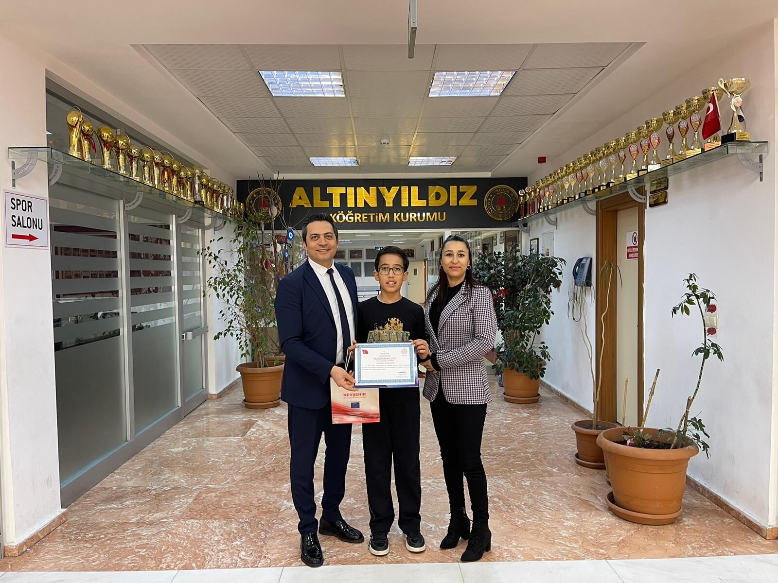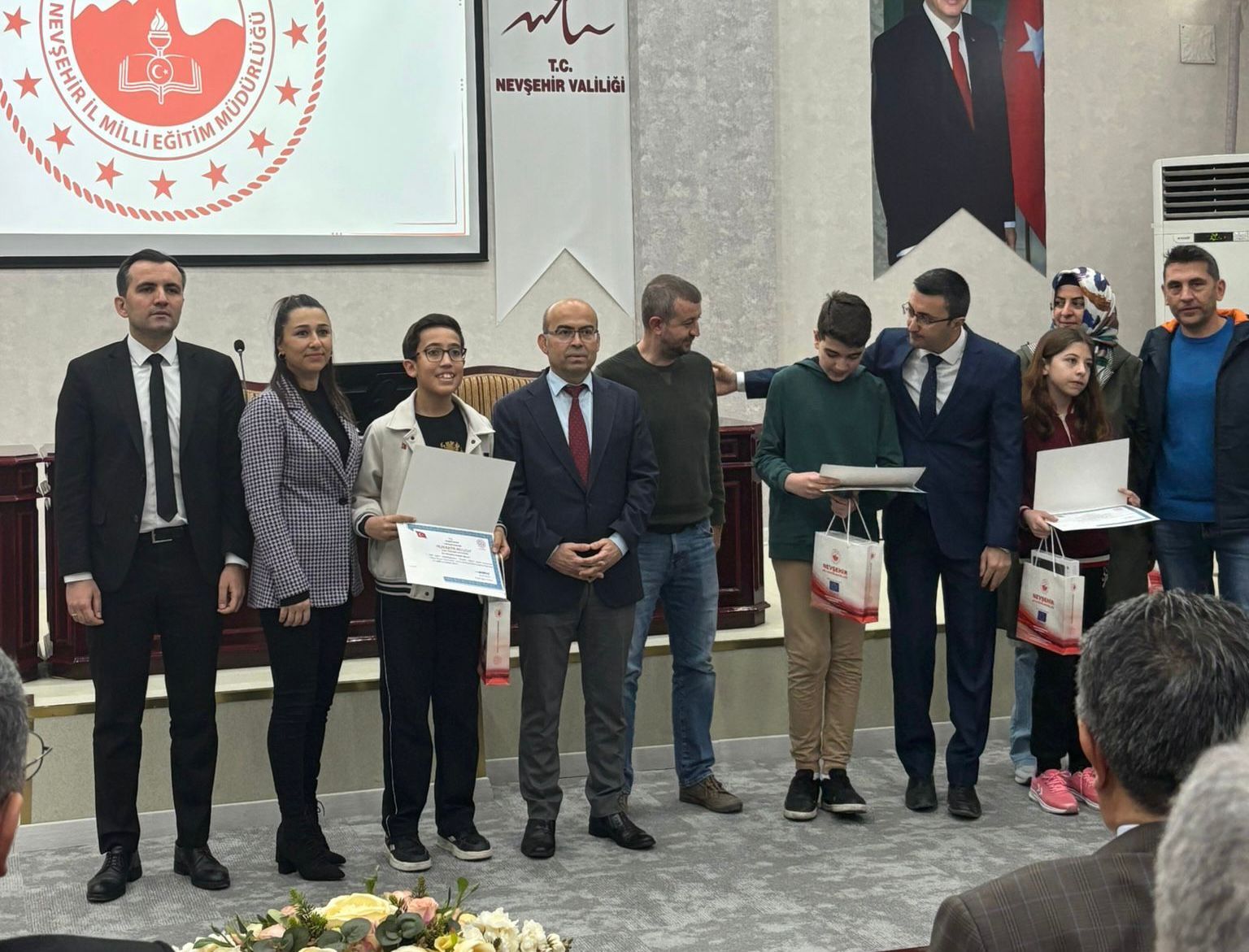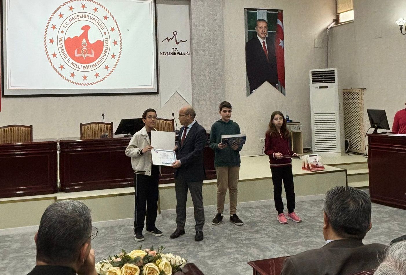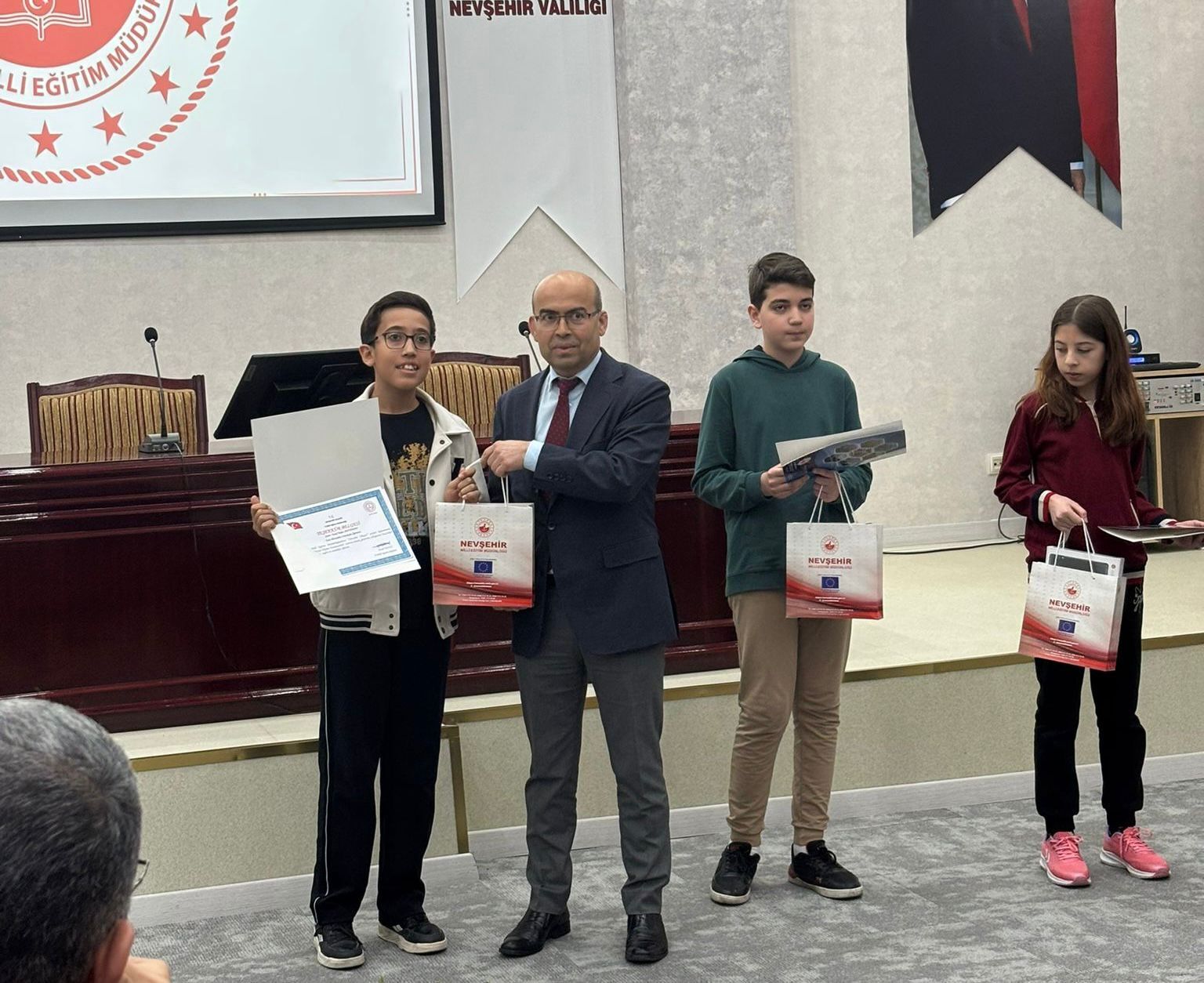 6.sınıf öğrencisi Yusuf Buğra Adıyaman, yarışmada gösterdiği üstün performansla derece elde ederek ödül almaya hak kazandı. Başarılı öğrenci, Nevşehir Valiliği’nde düzenlenen törende, İl Millî Eğitim Müdürü tarafından ödül ve başarı sertifikası ile onurlandırıldı.