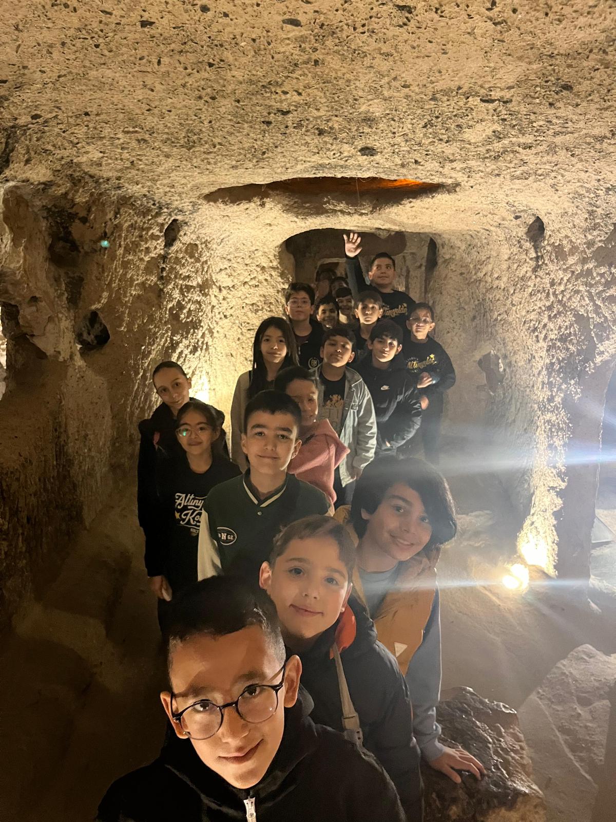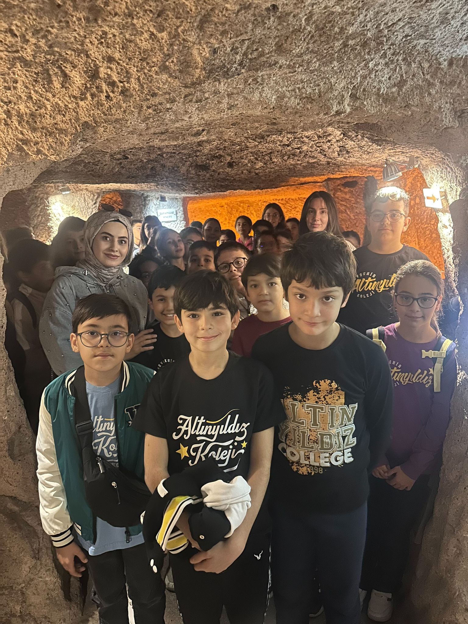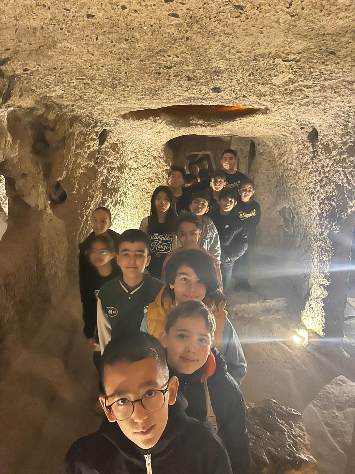 Öğrenciler, yeraltı şehrinde “İlk Çağ Uygarlıkları” konusunu yerinde öğrenme fırsatı buldu. Tarihin izlerini adım adım takip eden Altınyıldızlı öğrenciler, bu özel ders deneyimiyle geçmişe adeta bir yolculuk yaptılar.