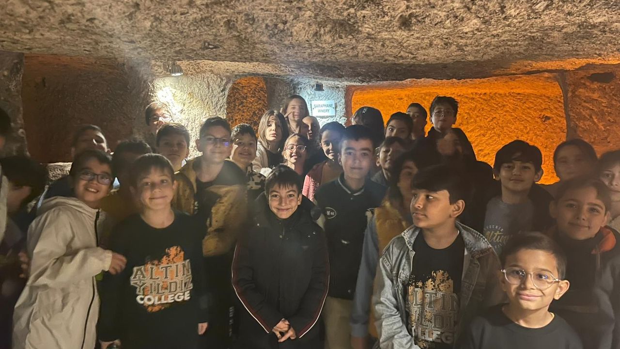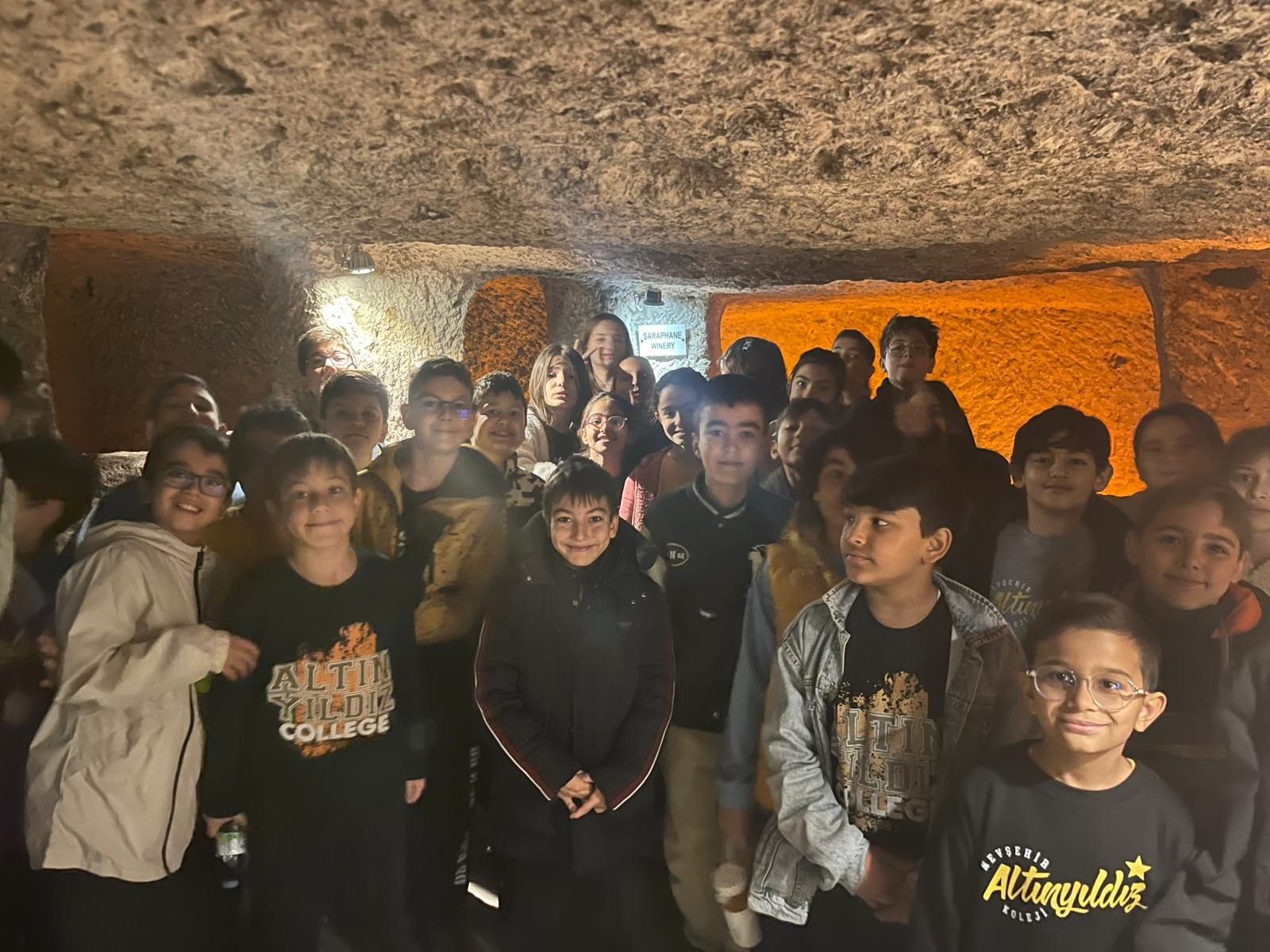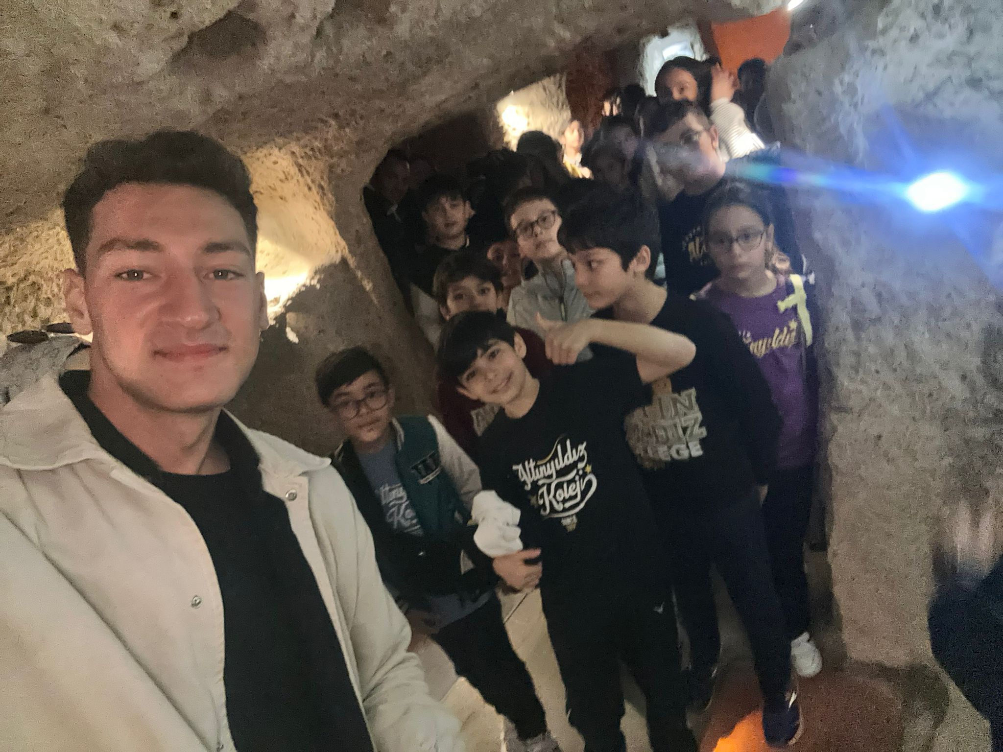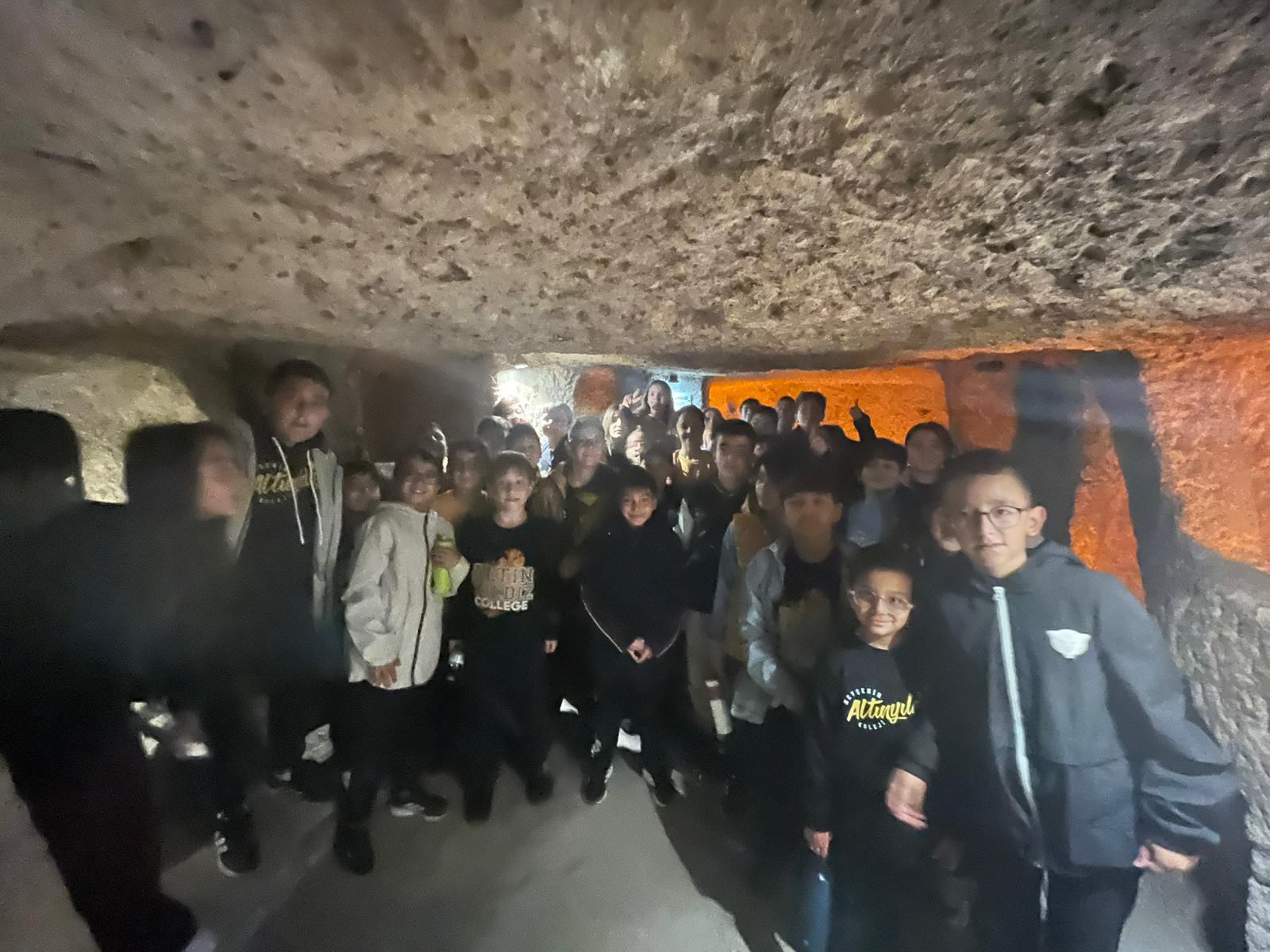 Öğrenciler, yeraltı şehrinde “İlk Çağ Uygarlıkları” konusunu yerinde öğrenme fırsatı buldu. Tarihin izlerini adım adım takip eden Altınyıldızlı öğrenciler, bu özel ders deneyimiyle geçmişe adeta bir yolculuk yaptılar.