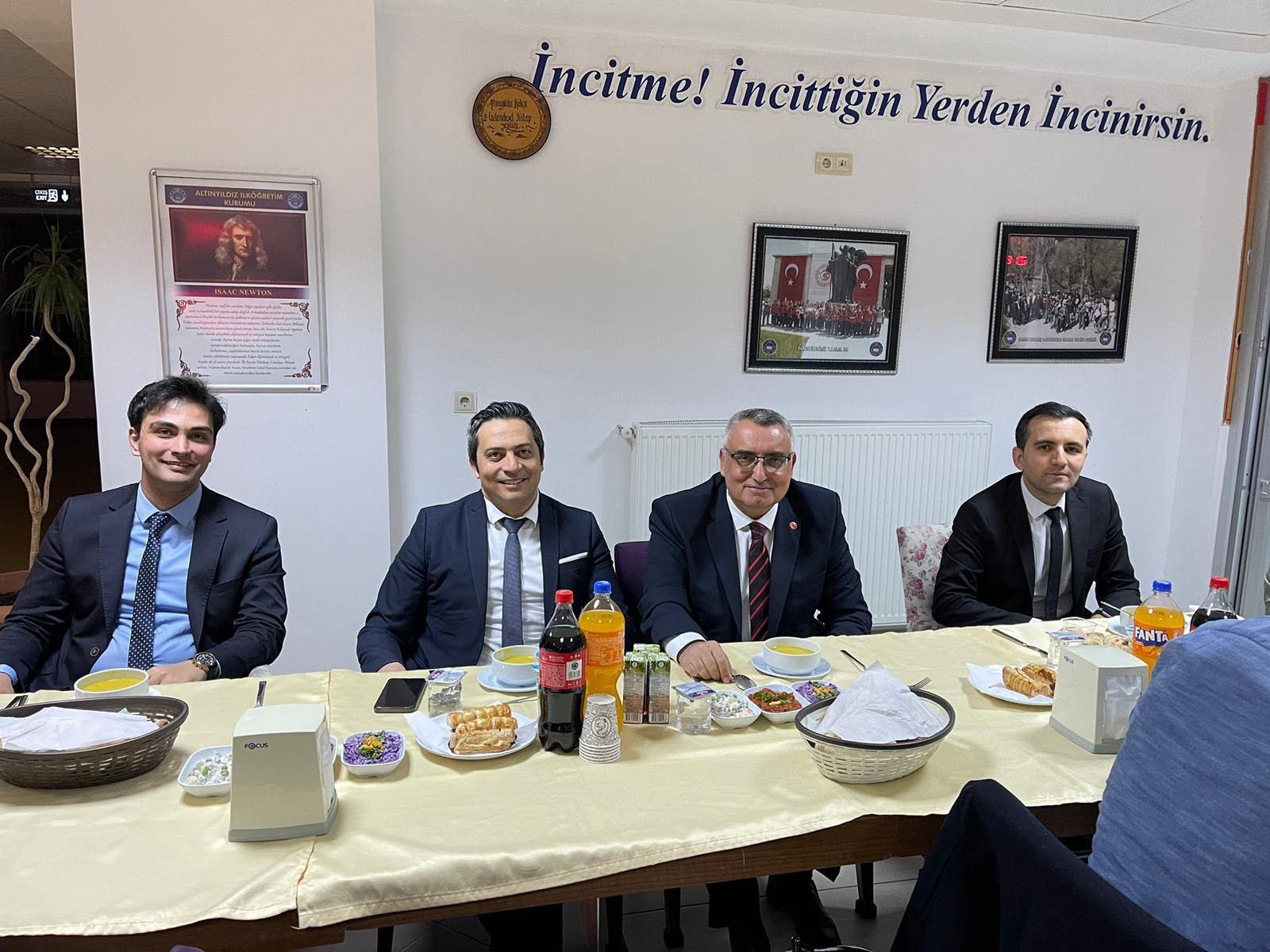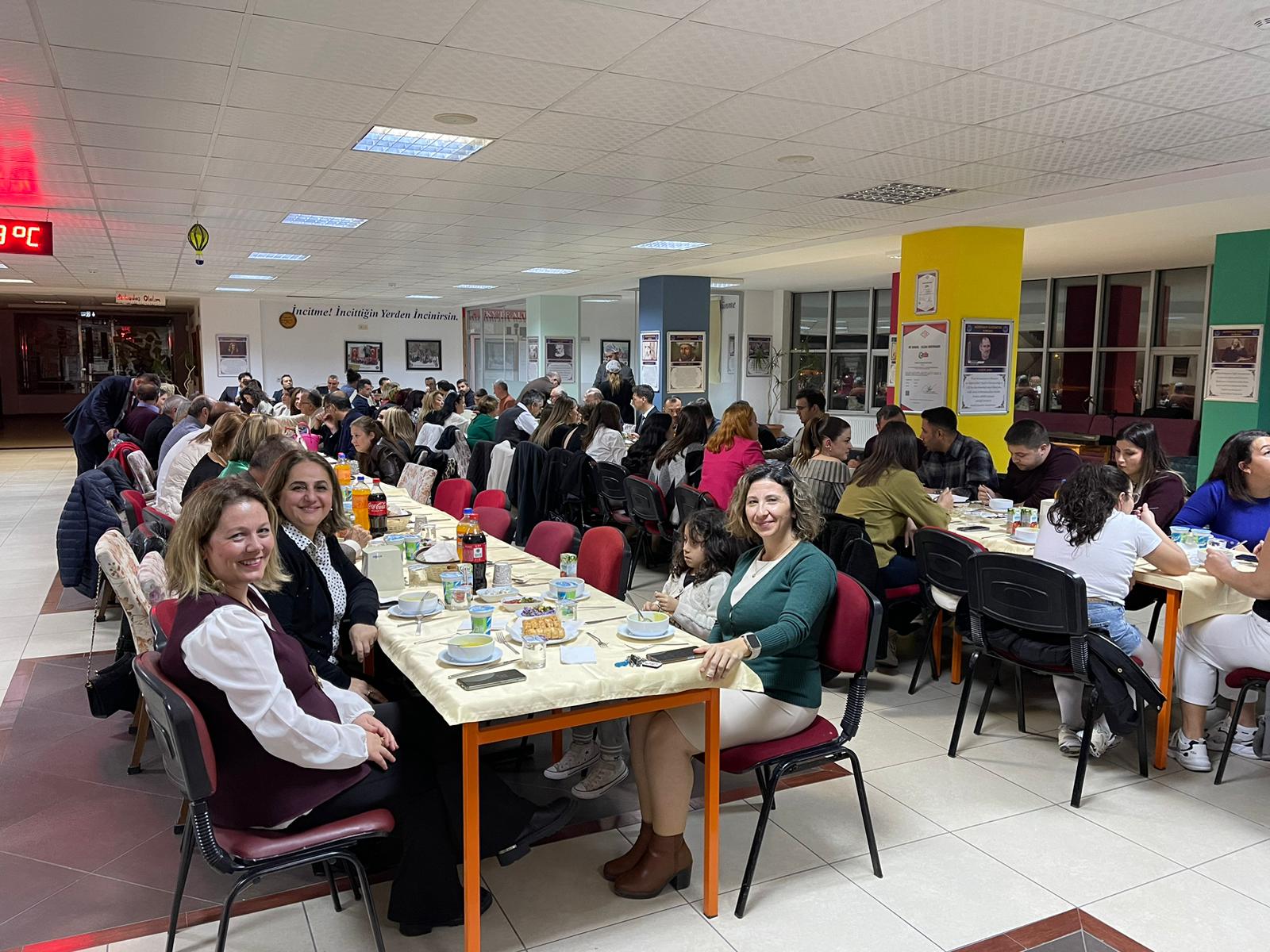 24 Kasım Öğretmenler günü Altınyıldız Eğitim Kurumlarında çeşitli etkinliklerle kutlanmaya devam ediyor. Hafta içerisinde öğretmenlik mesleğinin anlam ve önemini belirten sınıf ve okul içi görsellerin sunumunun ardından Altınyıldız Eğitim Kurumlarına bağlı Anaokulu, İlköğretim Okulu ile Fen ve Anadolu Lisesinin yönetici ve öğretmenleri yemekte bir araya geldi. Yemek programına Genel Müdür, okul müdürleri, müdür yardımcıları ile öğretmenler ve öğretmen yakınları katıldı.