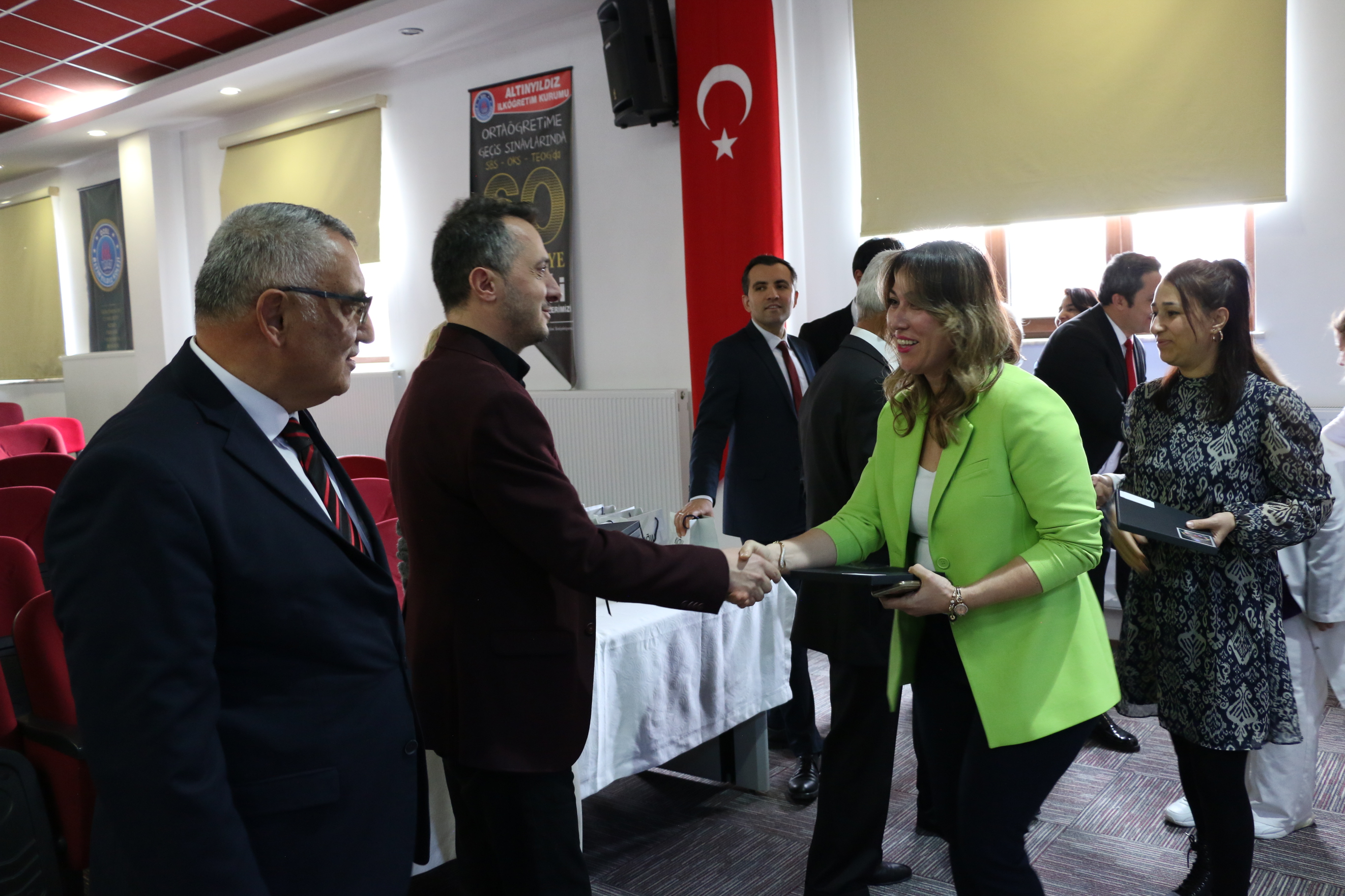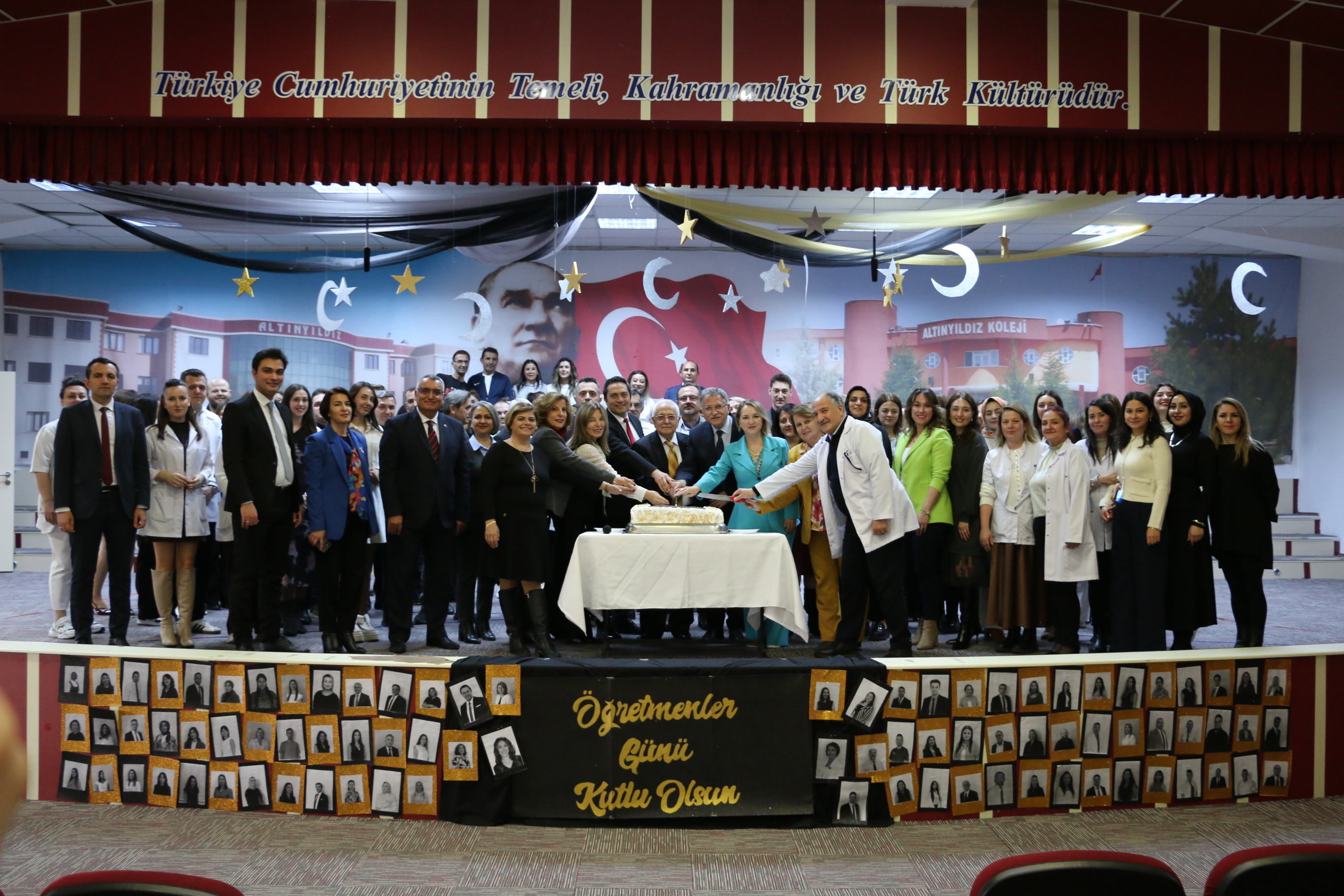 Geleneksel 24 Kasım Öğretmenler Günü pastasının kesilmesi ve hediye takdimi törenine ise Altınyıldız Eğitim Kurumları Yönetim Kurulu Başkanı Ragıp Özaltın, Yönetim Kurulu Başkan Yardımcısı Fevzi Karaca, Yönetim Kurulu Başkan Vekili Emre Özaltın, Genel Müdür Seyrani İpek ile Kreş Müdürü Hande Özaltın, Anaokulu Müdürü Emine Gönen, İlköğretim Kurumu Müdürü Ahmet Ünal, Fen ve Anadolu Lisesi Müdürü Özkan Kılınç, müdür yardımcıları ve öğretmenler katıldı. Törende bir konuşma yapan Yönetim Kurulu Başkanı Ragıp Özaltın, Geleceğimizin teminatı çocuklarımızı bilgiyle, sevgiyle ve sabırla yetiştiren tüm öğretmenlerimizin 24 Kasım Öğretmenler Günü’nü içtenlikle kutluyorum, dedi.