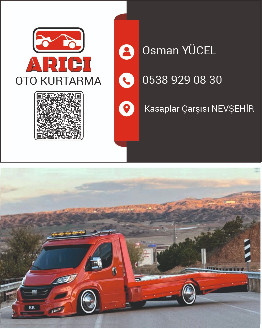 Nevşehir Kasaplar Çarşısı’nda faaliyet gösteren Arıcı Oto Kurtarma; otomobil, hafif ticari araç ve traktörler başta olmak üzere her türlü aracın kurtarma ve taşıma işlemlerini titizlikle gerçekleştiriyor. Şehir içi ve şehirler arası oto kurtarma hizmeti sunan firma, 7 gün 24 saat kesintisiz hizmet anlayışıyla sürücülerin mağduriyetini en aza indirmeyi hedefliyor.