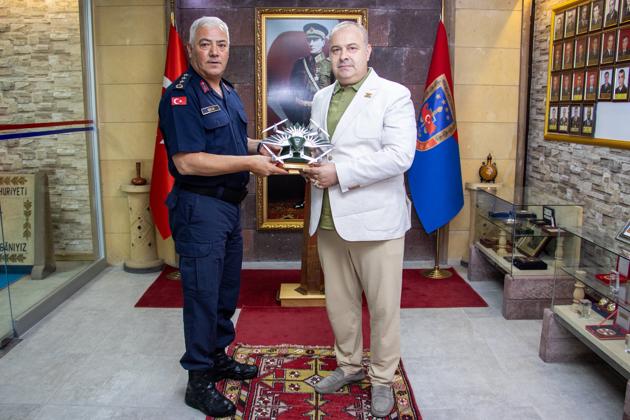 Assuva Uzay ve Havacılık Savunma Sanayi Yönetim Kurulu Başkanı Remzi Başbuğ, Nevşehir İl Jandarma Komutanlığı görevine başlayan Jandarma Kıdemli Albay Mehmet Çelik’i makamında ziyaret ederek hayırlı olsun dileklerini iletti.