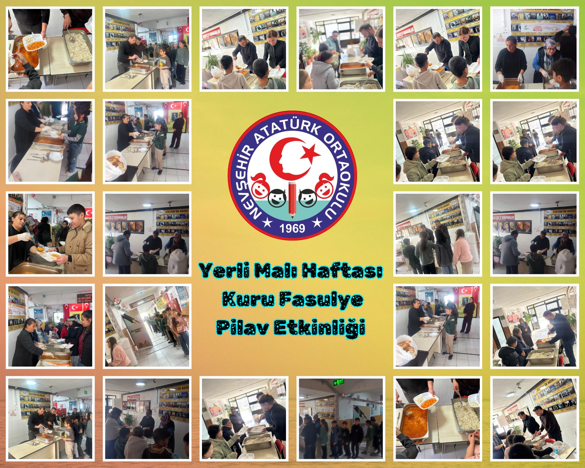 Yerli Malı Haftası kapsamında Nevşehir Atatürk Ortaokulu’nda anlamlı ve renkli bir etkinlik düzenlendi. 20 Aralık 2025 tarihinde gerçekleştirilen etkinlikte öğrenci ve öğretmenlere kuru fasulye ve pilav ikramı yapıldı. Yoğun katılımın olduğu etkinlik, samimi ve coşkulu bir atmosferde tamamlandı.