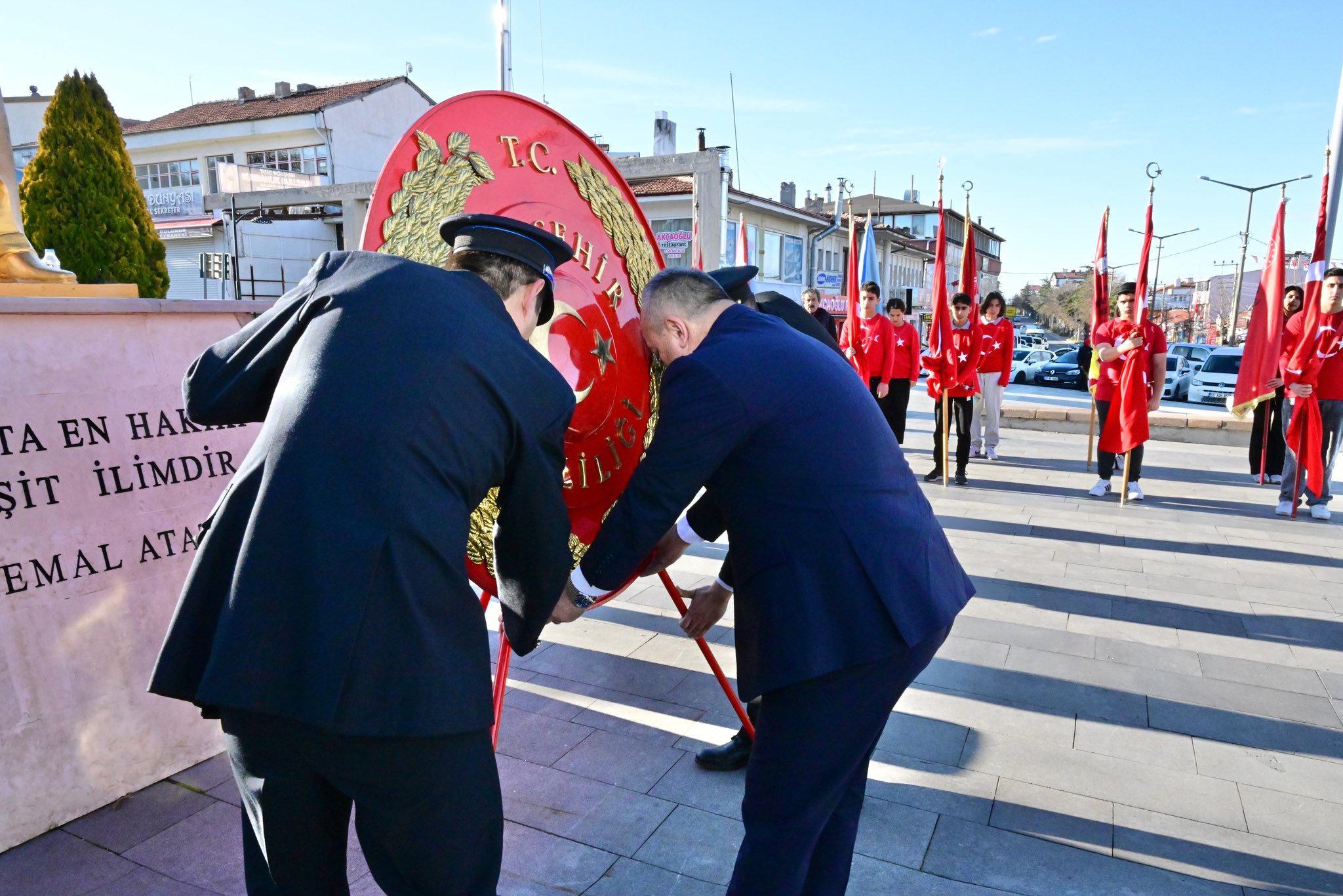 Program, Vali Ali Fidan’ın Atatürk Anıtı’na çelenk sunmasıyla başladı. Çelenk sunumunun ardından saygı duruşunda bulunuldu ve İstiklal Marşı eşliğinde bayrak göndere çekildi.