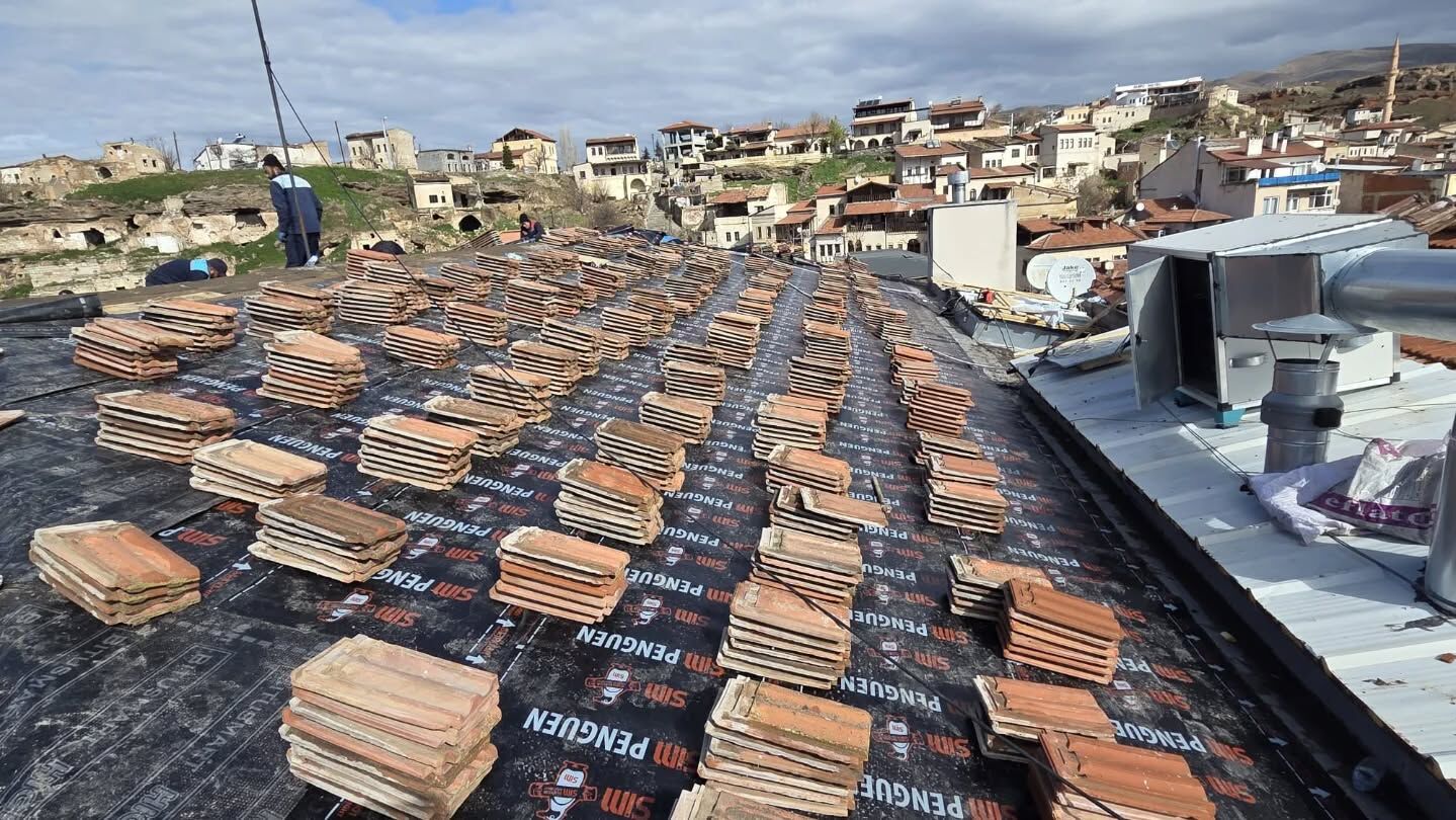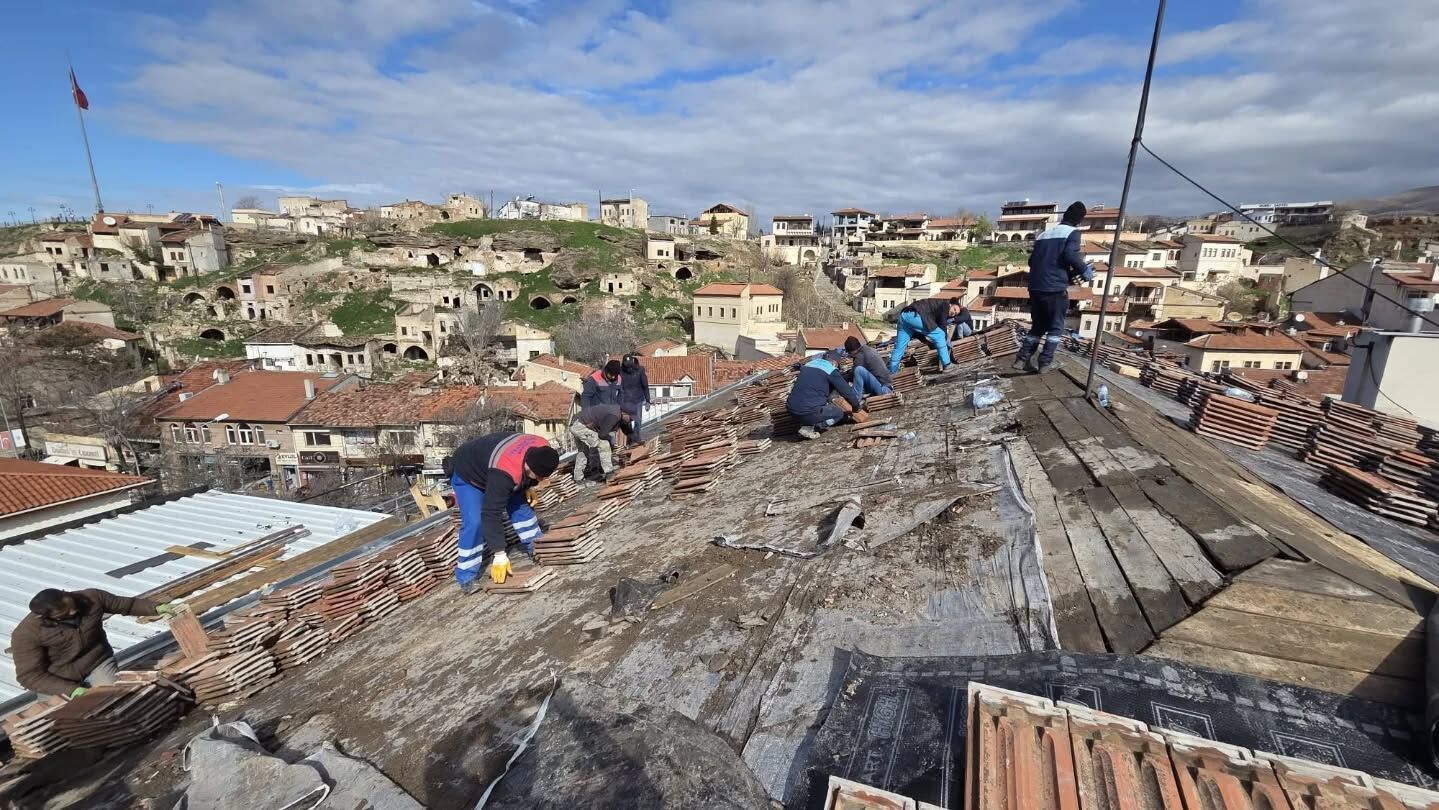 Avanos Belediyesi hizmet binasında kapsamlı yenileme ve bakım çalışmaları devam ediyor. Eskiyen ve kırılan çatı kiremitleri yenilenirken, alt kısımlar yalıtım malzemesi ile desteklenerek yapının dayanıklılığı artırılıyor.