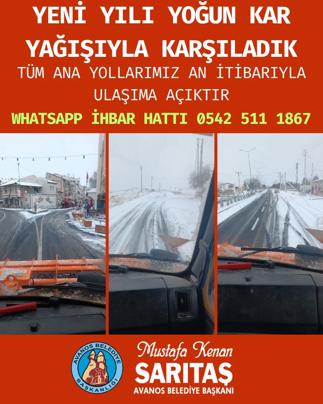 Nevşehir’in Avanos ilçesi, 2026 yılının ilk gününe yoğun kar yağışı ile uyandı. Kar yağışının etkili olmasıyla birlikte Avanos Belediyesi ekipleri, herhangi bir olumsuzluk yaşanmaması için hızlı ve koordineli bir şekilde sahaya indi.