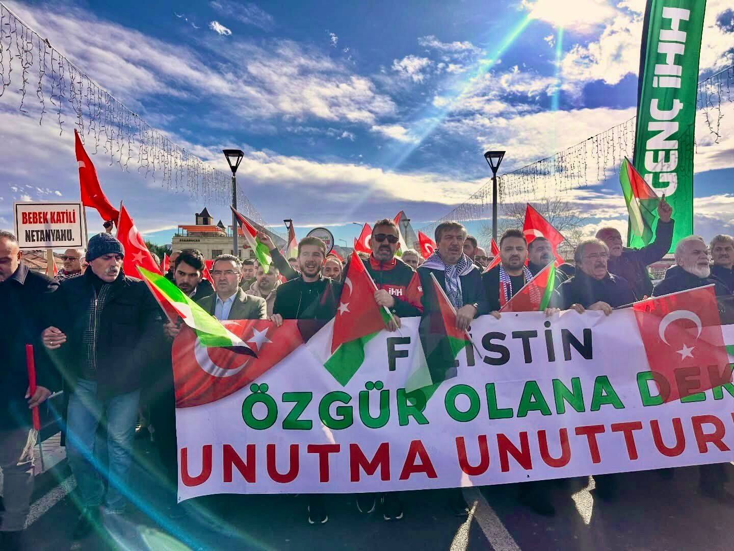 “Vicdanın sesi olmak için bir aradaydık. Şehrimizdeki sivil toplum kuruluşlarımızın öncülüğünde düzenlenen Gazze’ye destek yürüyüşünde, teşkilatlarımızla birlikte zulme karşı omuz omuza yürüdük. Mazlumların sesi olmak, adaletin ve insanlığın tarafında durmaktır. Kalbimiz de duamız da Gazze ile… Gazze yalnız değildir.”