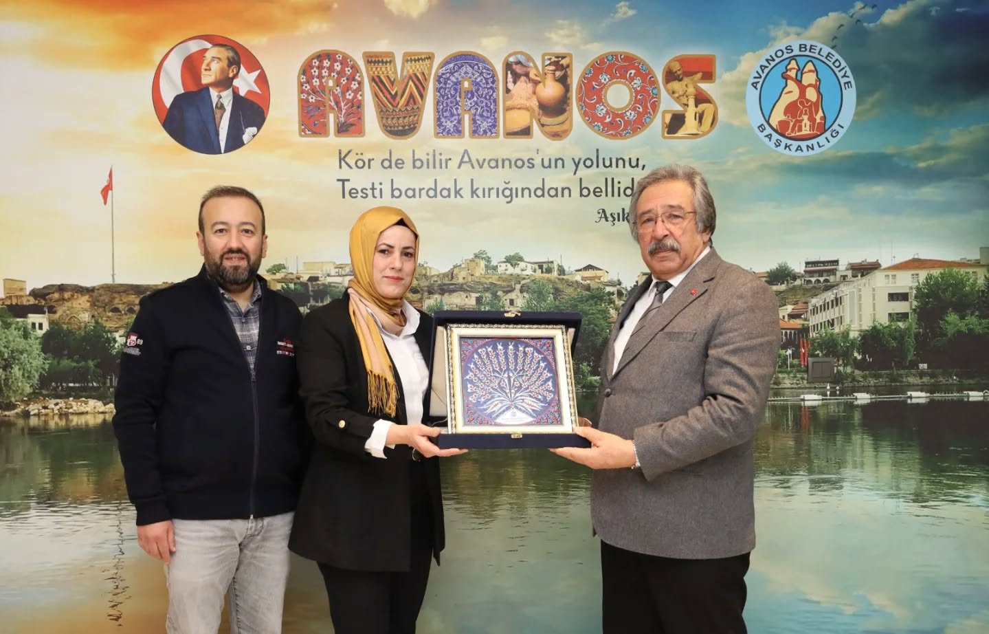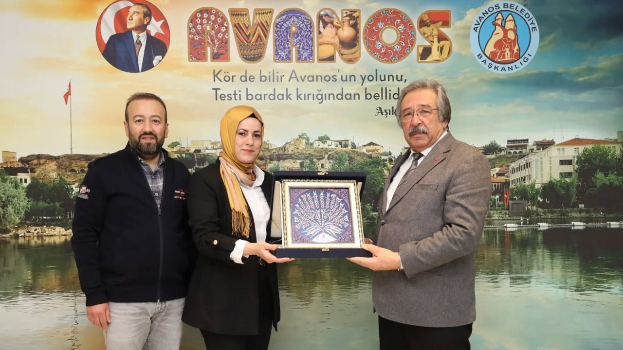 Ziyaret kapsamında Başkan Sarıtaş, Ayşe Üvez’e Avanos’un el sanatlarını simgeleyen “Hayat Ağacı” formunda bir plaket takdim ederek başarılarının devamını diledi.
