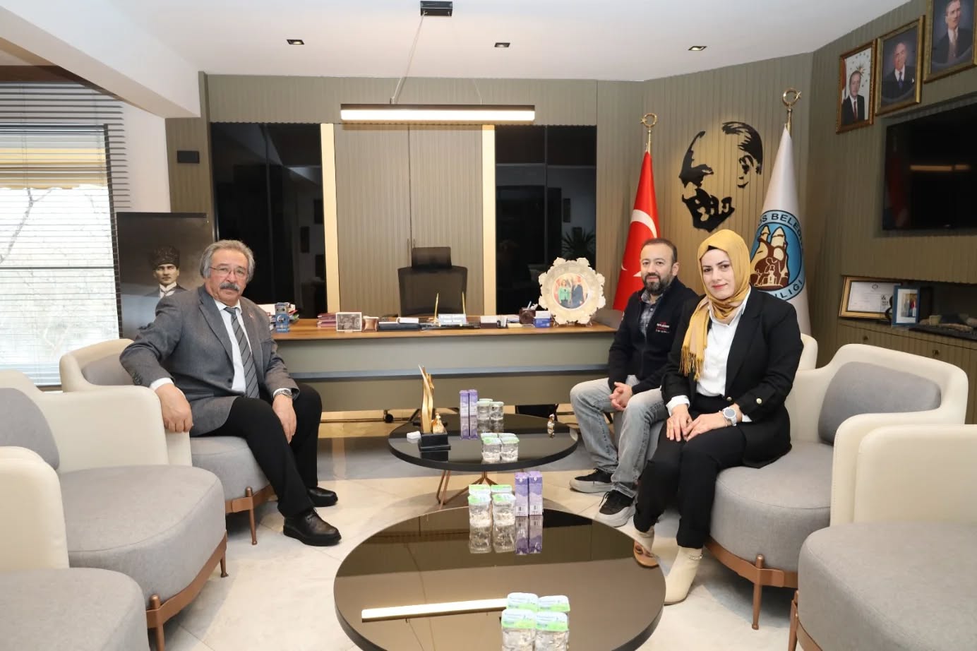 Geleneksel Türk dokuma sanatının zarif örneklerinden biri olan ipek halı sanatını 28 yıldır büyük bir ustalıkla sürdüren Ayşe Üvez, eşi Mehmet Üvez ile birlikte Avanos Belediye Başkanı Mustafa Kenan Sarıtaş’ı makamında ziyaret etti.