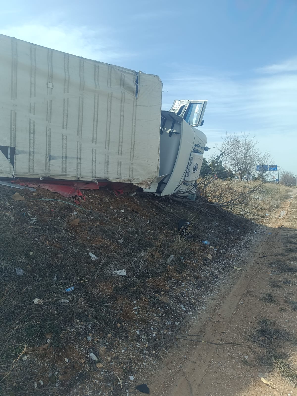 Görgü tanıkları, TIR’ın bir anda savrulduğunu ve yol kenarına doğru yan yattığını ifade etti.