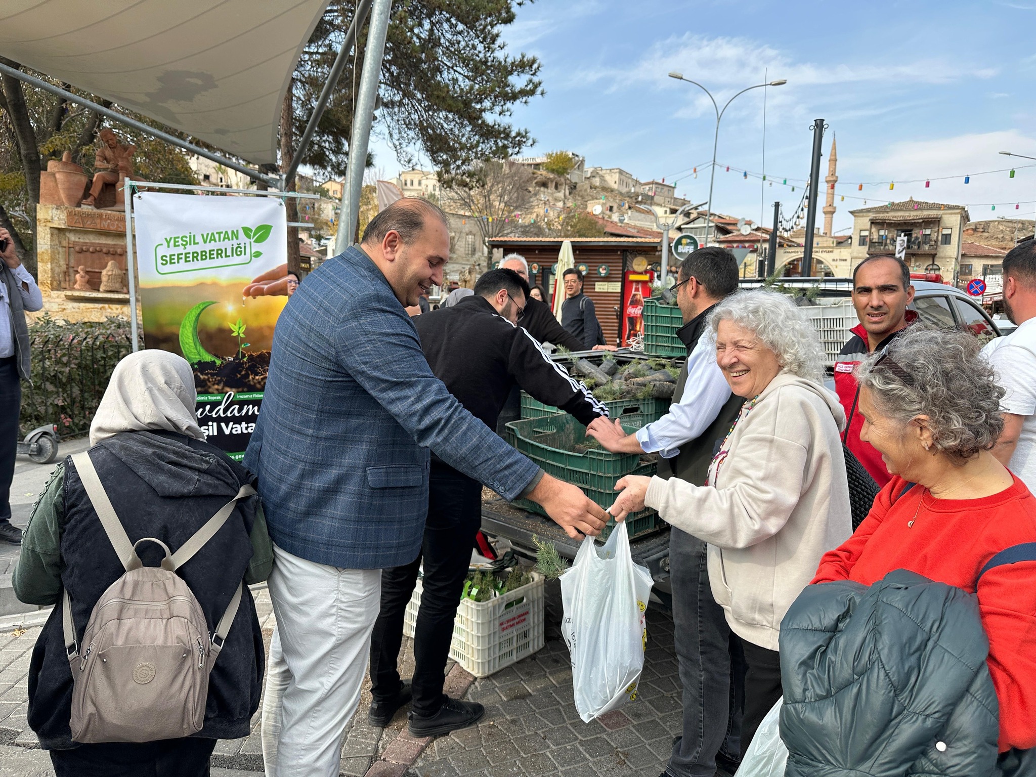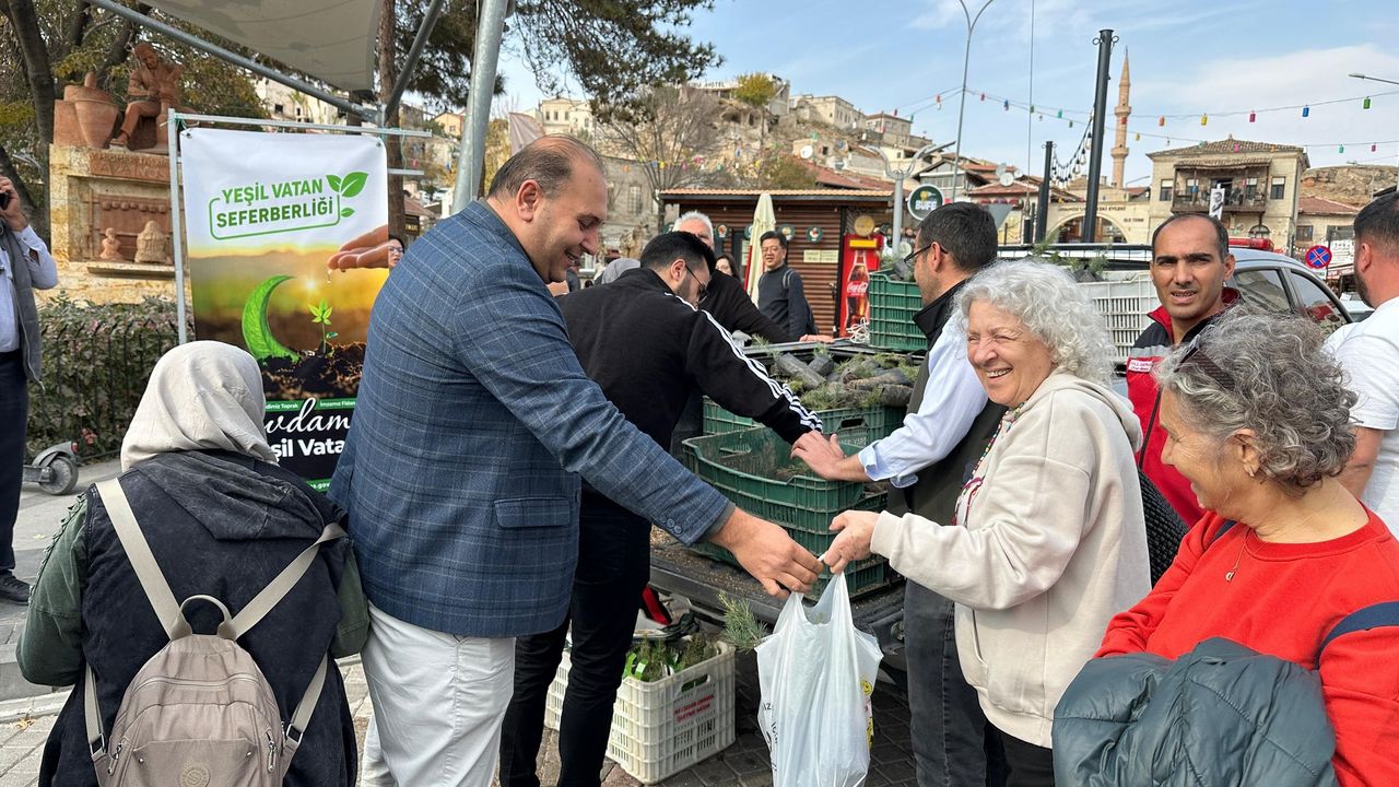 Avanos ilçe merkezinde gerçekleştirilen etkinliğe vatandaşlar yoğun ilgi gösterdi. Katılımcılara dağıtılan fidanlar, kısa süre içinde toprakla buluşturularak yeşil alanların artırılmasına katkı sağladı.
