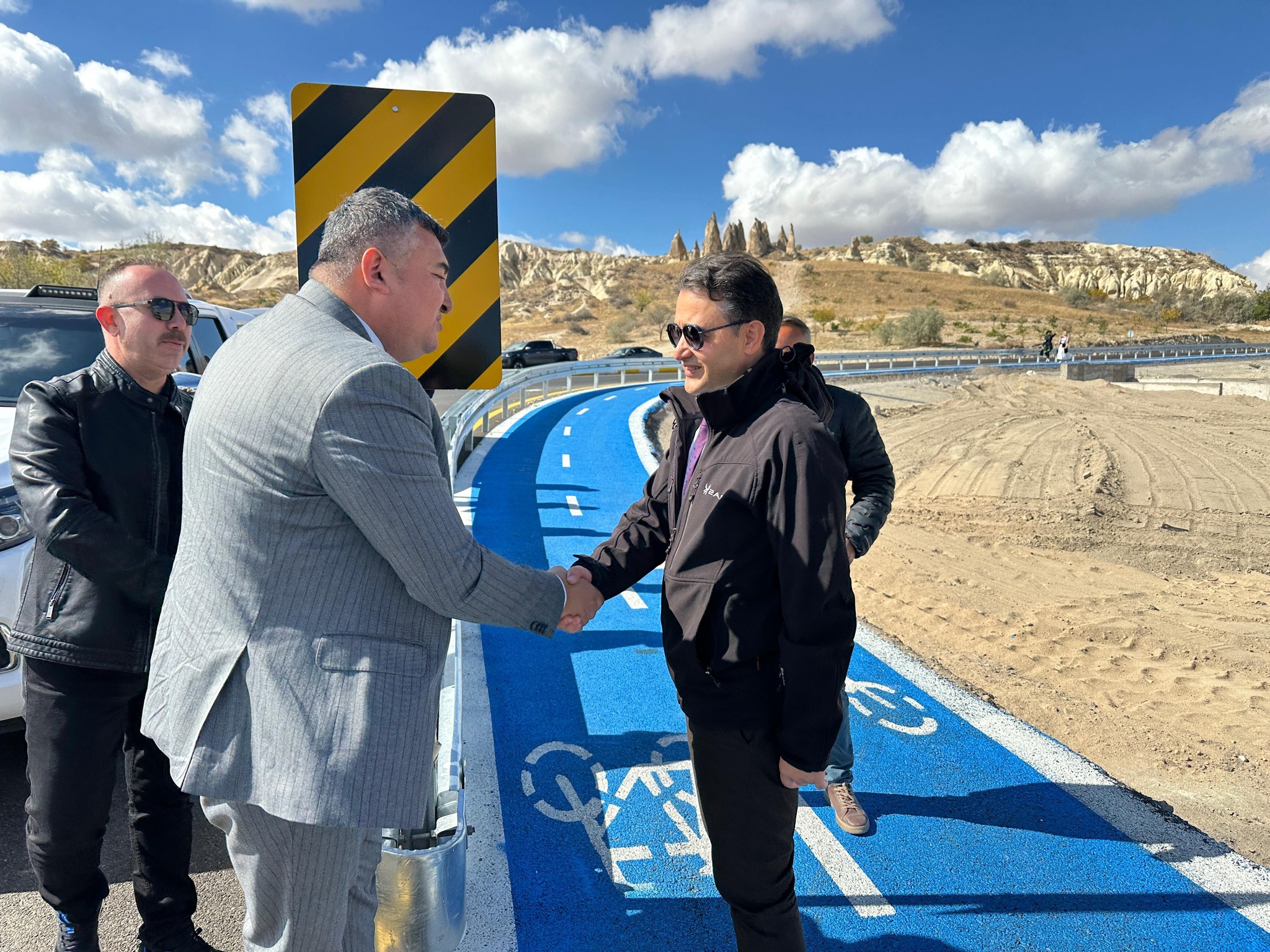 Heyetin ikinci durağı ise Avanos – Çavuşin Köyü – Göreme Kavşağı güzergâhında yapımı devam eden Yürüyüş ve Bisiklet Yolu Projesi oldu. Çevreci ulaşım alternatiflerini destekleyen proje, hem vatandaşların hem de bölgeyi ziyaret eden turistlerin güvenli ulaşımına katkı sağlayacak.