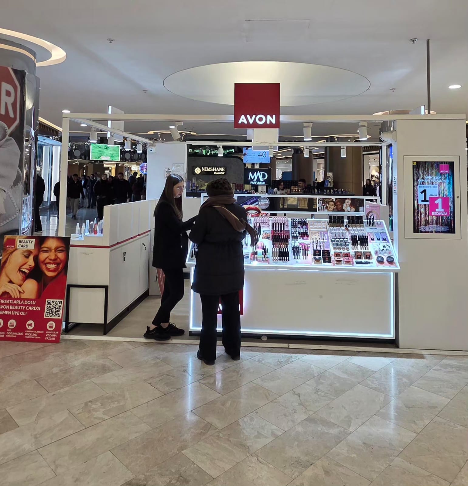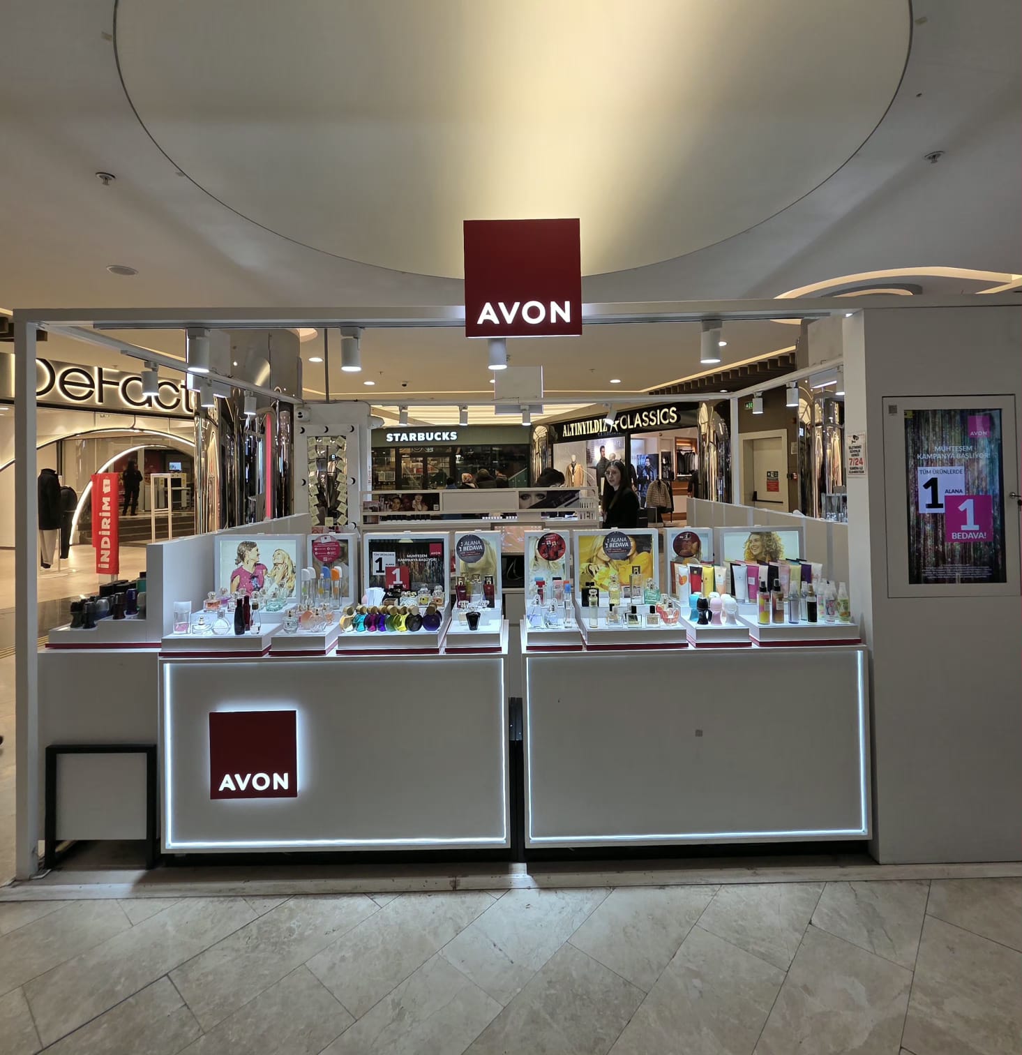 Starbucks karşısı konumunda yer alan Avon Kozmetik standında, kampanya boyunca tüm kadın ve erkek parfümleri özel indirimle satışa sunulacak. Kampanya kapsamında bir parfüm alan müşteriler, ikinci parfümü sadece 200 TL karşılığında satın alabilecek.