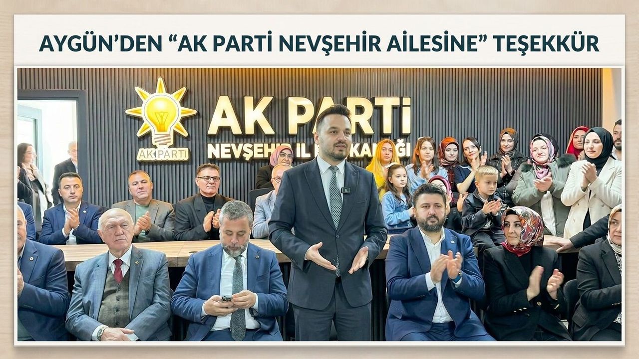 Teşkilat mensuplarının samimiyetle ve büyük bir özveriyle çalıştığını vurgulayan Aygün, “Bu başarı; her haneye ulaşan, vatandaşlarımızın gönlüne dokunan teşkilatımızın eseridir. AK Parti Nevşehir aileme gönülden teşekkür ediyorum” ifadelerini kullandı.