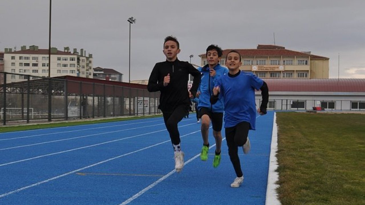 Nevşehir'de yağmurlu ve soğuk havaya rağmen atletizmciler azimle ve hırsla çalışıyor.