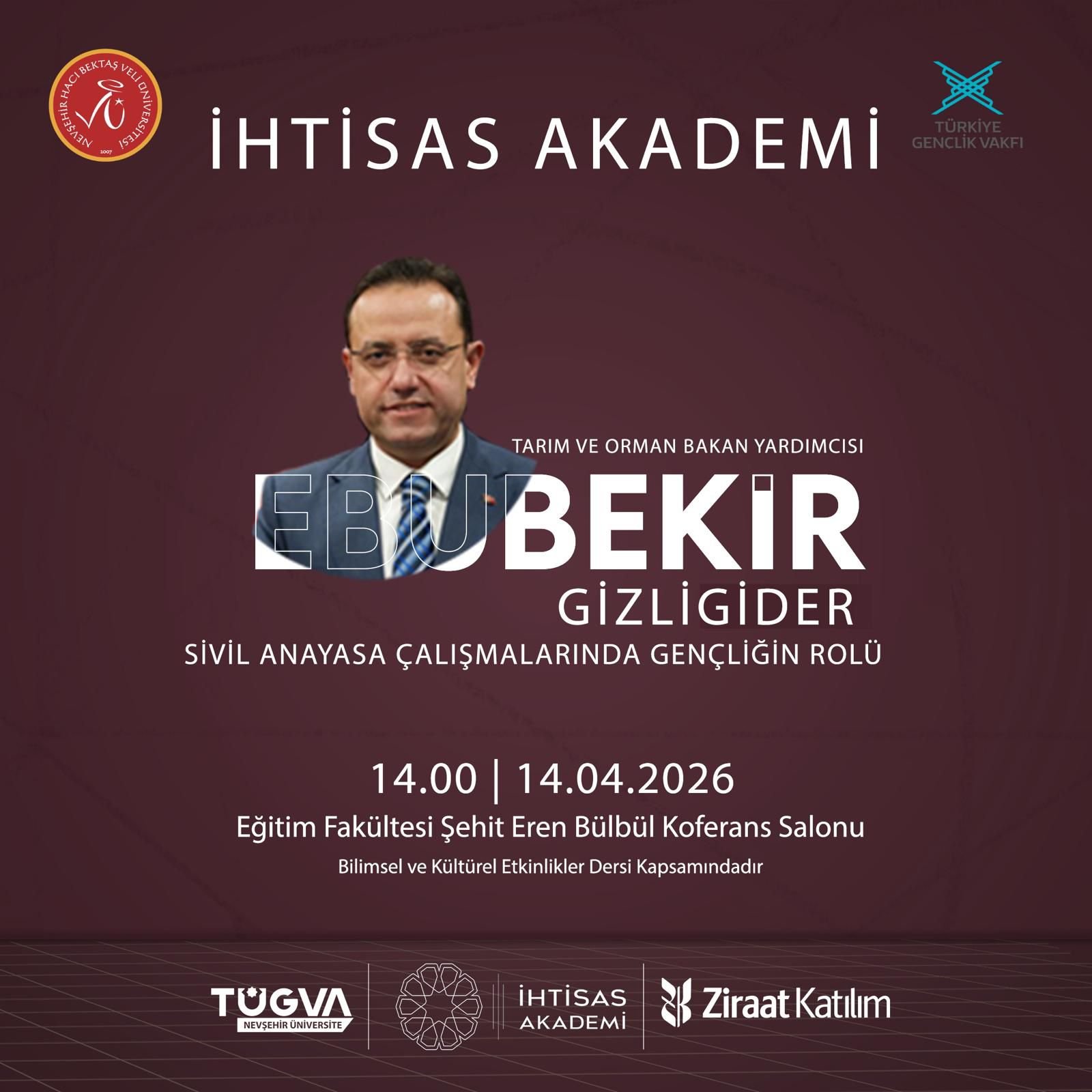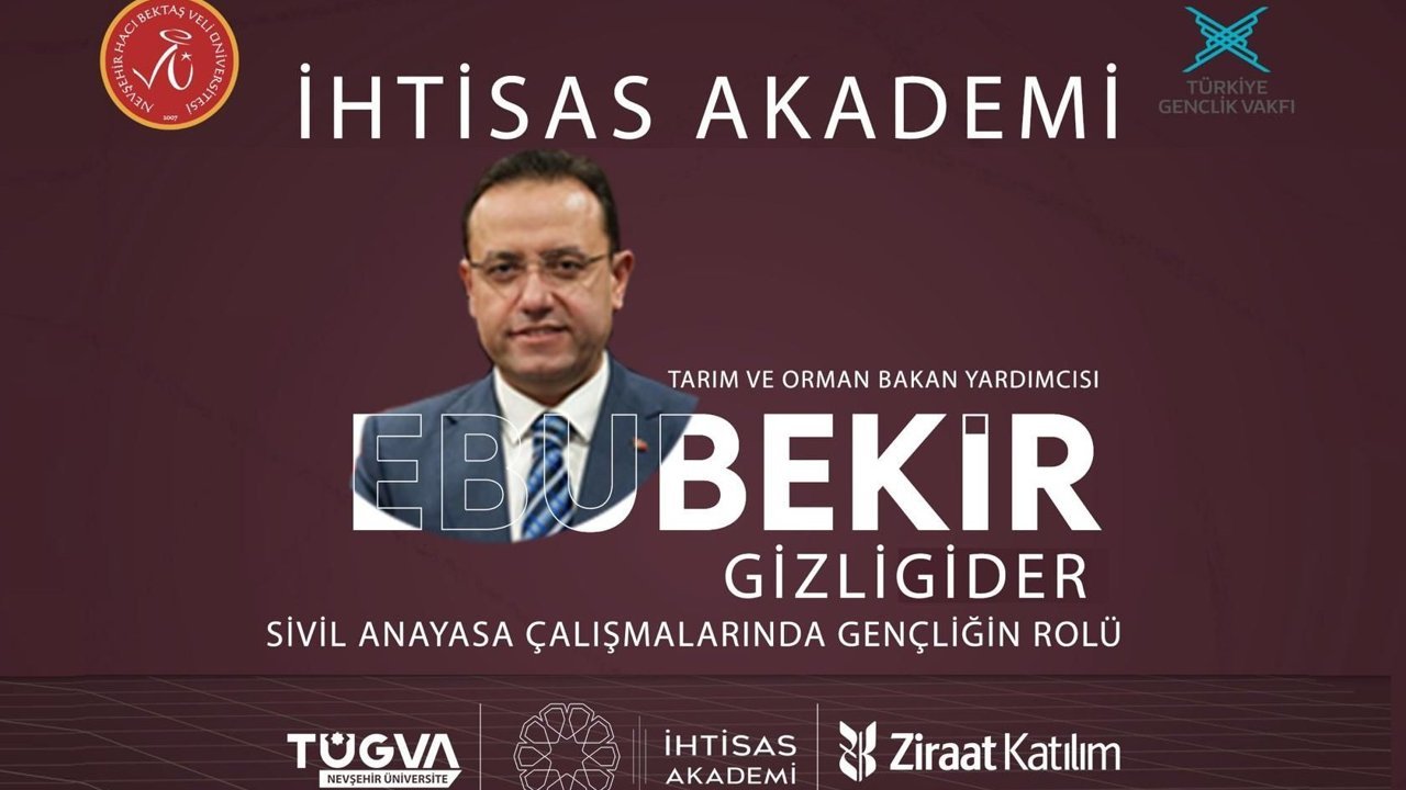 Tarım ve Orman Bakan Yardımcısı Ebubekir Gizligider, “İhtisas Akademi” programı kapsamında Nevşehir Hacı Bektaş Veli Üniversitesi öğrencileriyle bir araya gelecek.