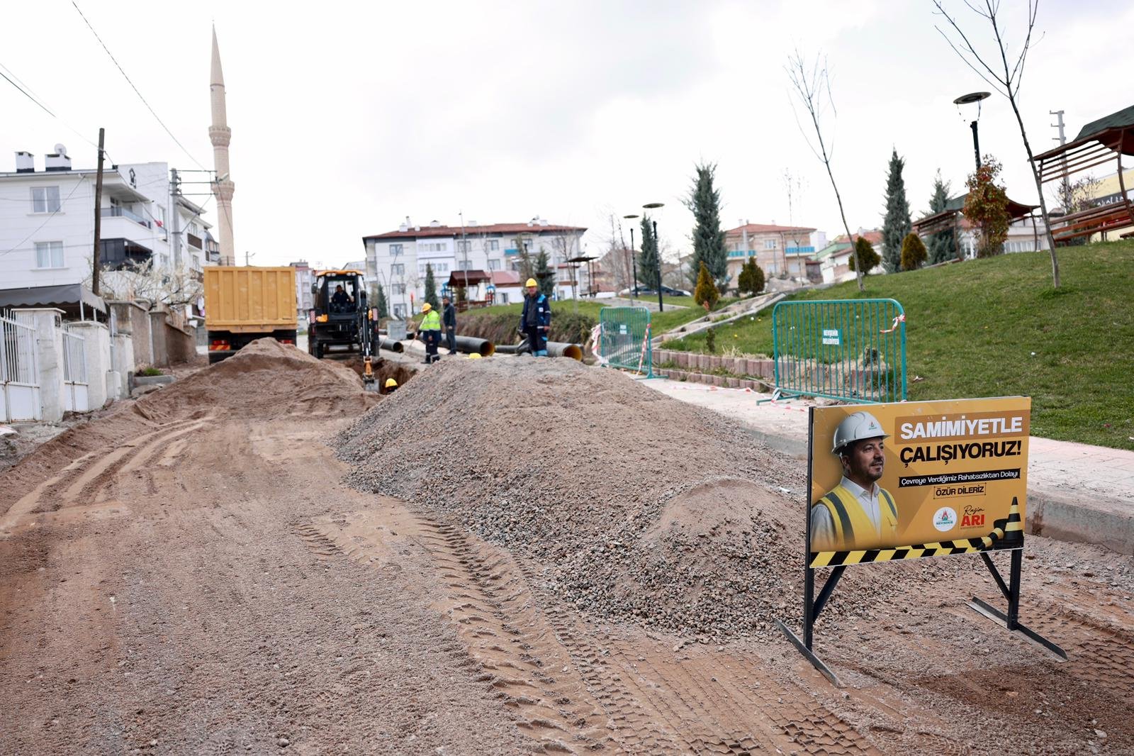 Çalışmalarda görev alan belediye personellerine kolaylıklar dileyen Başkan Arı,”2026 yılının Nisan ayından itibaren ikinci büyük altyapı ve üstyapı hamlesini başlattık. Geçen yıl yaptığımız altyapının 2 katını yapıyoruz. Sadece bu yıl altyapı için harcayacağımız para 500 milyon lira. Şu an da kanalizasyon ve yağmur hattını değiştiriyoruz ondan sonra içme suyunu değiştireceğiz. Bu şehrin altyapı ve üstyapı problemi kalmayacak” diye konuştu.
