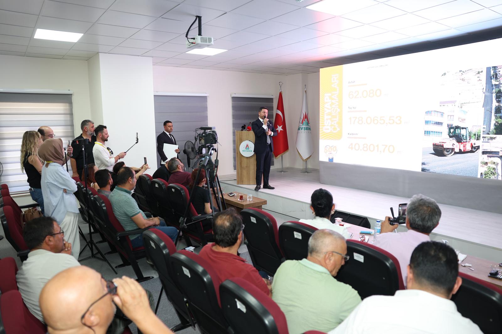 Başkan Arı, üstyapı çalışmaları, altyapı çalışmaları, geleceğe yatırım DSİ Projesi, Kahveci Dağı Konaklamalı Mesire Alanı, Kayaşehir Butik Otel Adası Projesi, sosyal tesisler, Mostar Gösteri Havuzu, Gönül Sofrası, Nostaljik Tramvay, Büyük Türklük Anıtı, 15 Temmuz Mah. Kaykay Parkı, Apadana Arkeolojik Park Alanı, Kayaşehir Spor Salonu, Araç Filosu, Nevşehir Belediyesi Mali Durumu ve Nevşehir Belediyesi Turizm Spor A.Ş başlıklarını içeren çok sayıda yatırım projesinin detaylarını aktararak basın mensuplarına ve Nevşehir kamuoyuna bilgiler verdi.