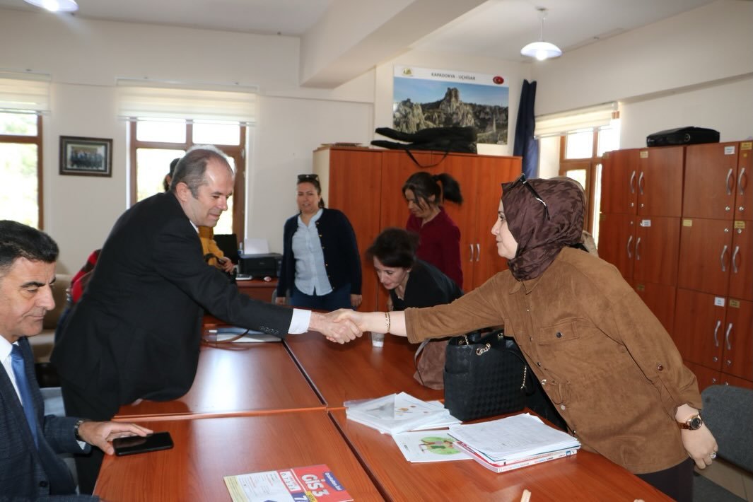 Başkan Çamcı, bu kapsamda Uçhisar Haydar Çankaya İlköğretim Okulu, Uçhisar Anaokulu ve Kardelen Koleji’ni ziyaret ederek öğretmenler ve okul idarecileriyle bir araya geldi.