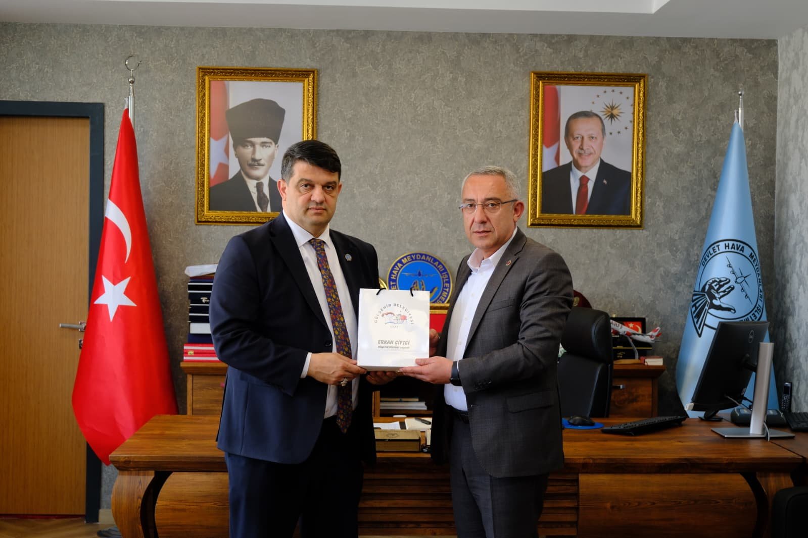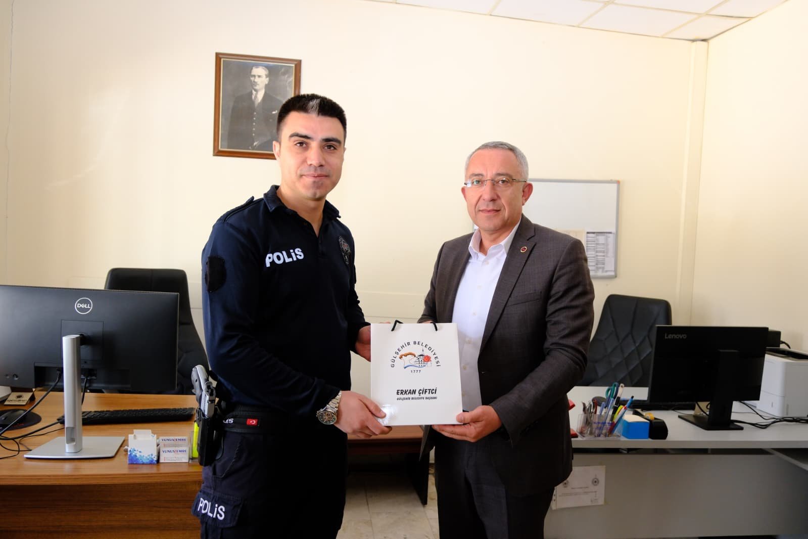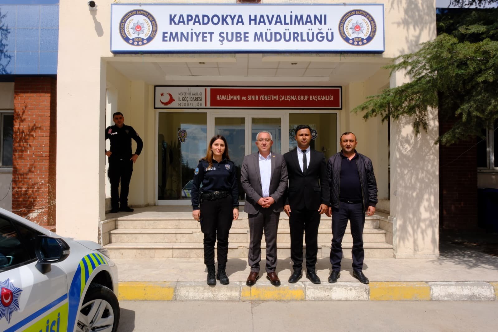 Gülşehir Belediye Başkanı Erkan Çiftci, Meclis Üyesi Yüksel Çavdar ile birlikte Kapadokya Havalimanı Emniyet Şube Müdürlüğü’nü ziyaret ederek, Başkomiser Serkan Demirtaş nezdinde tüm emniyet teşkilatının Polis Haftası’nı kutladı.