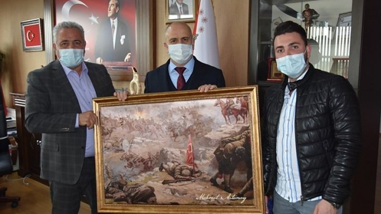 Nevşehir'in ülkemizin en huzurlu şehirlerinden biri olduğunu ifade eden Göreme Belediye Başkanı Ömer Eren, İl Emniyet Müdürü Artunay’a görevinde üstün başarılar dileyerek, kendisine “18 Mart Çanakkale Savaşı” temalı tablo hediye etti.